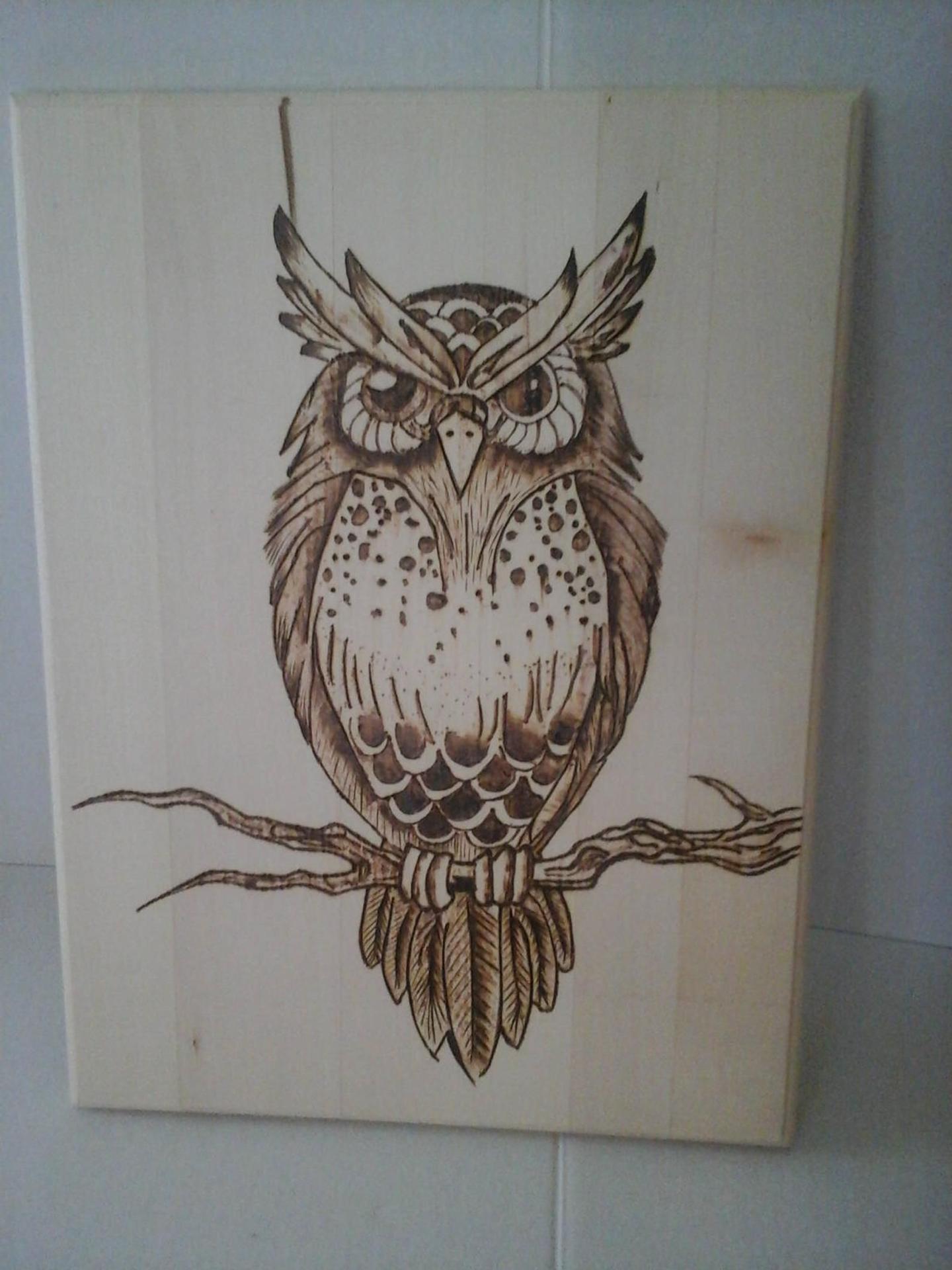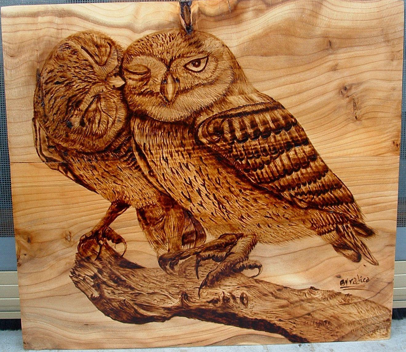 пирография по дереву сова