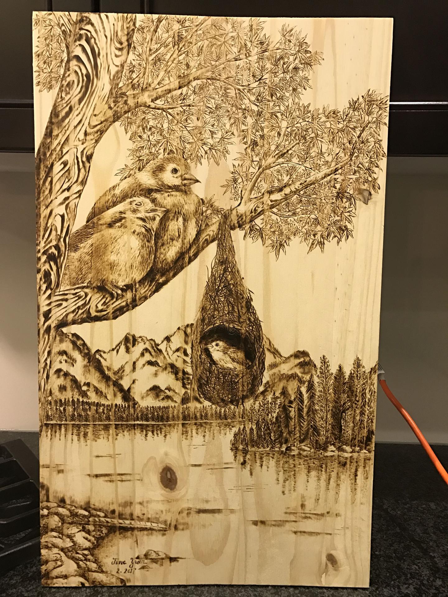 картина выжженная на дереве