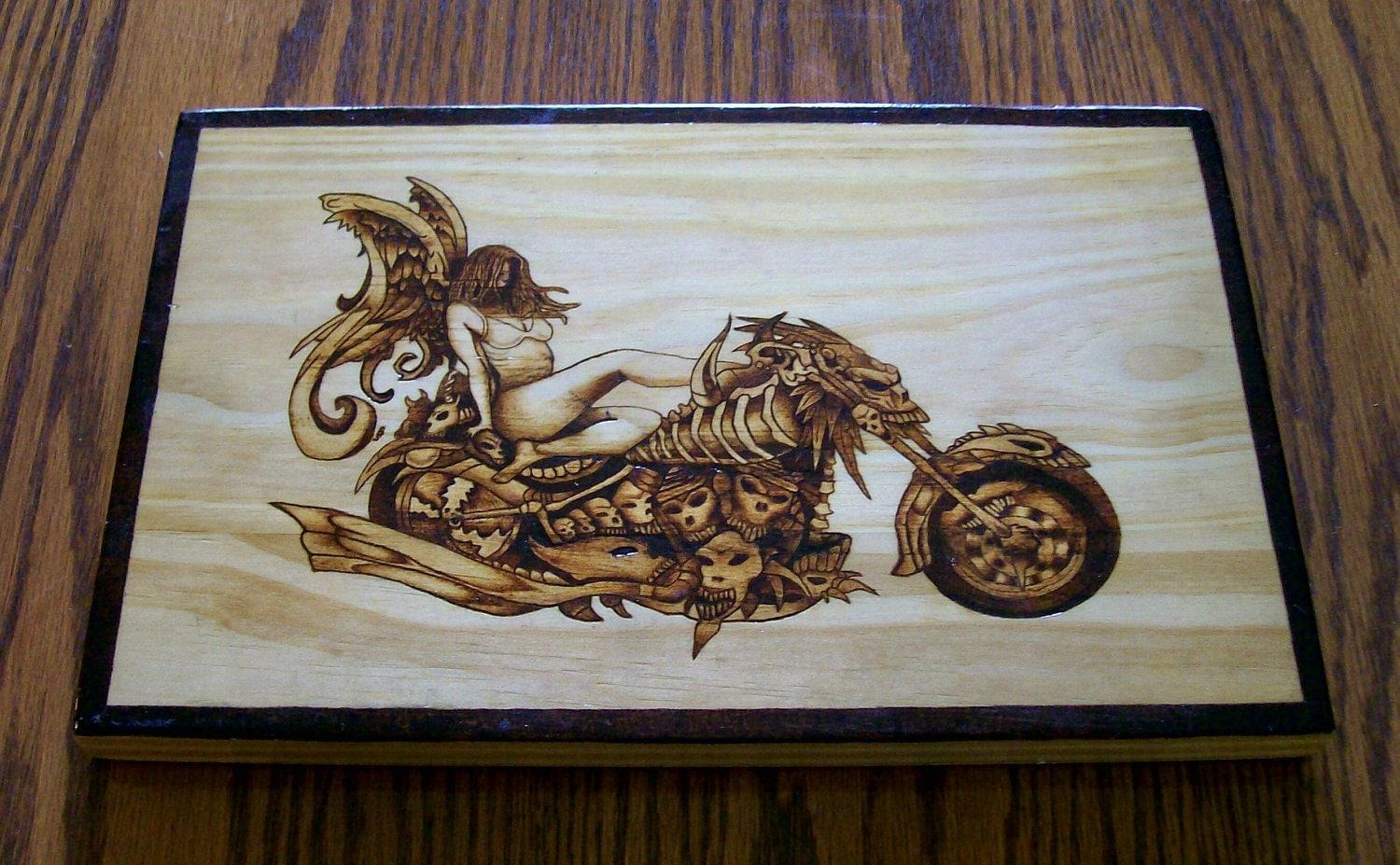 выжигать мотоциклы по дереву