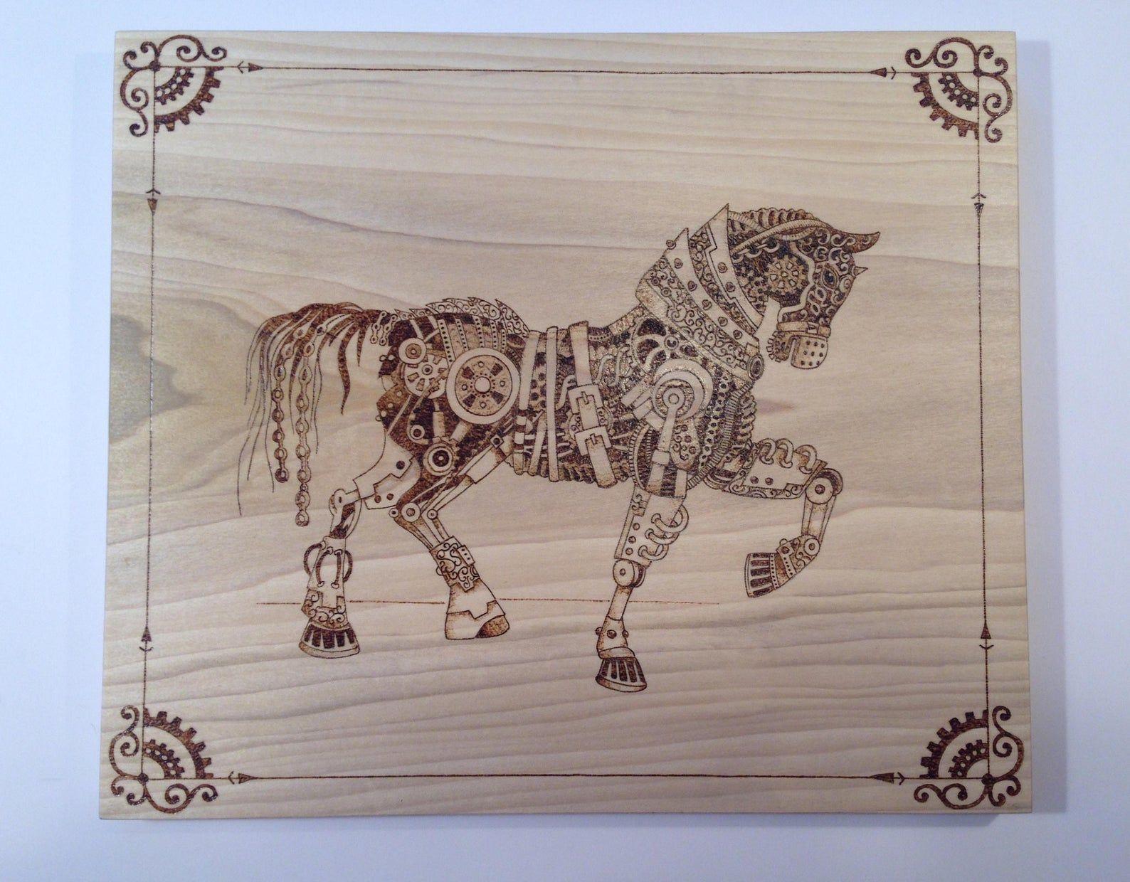выжигание по дереву лошади