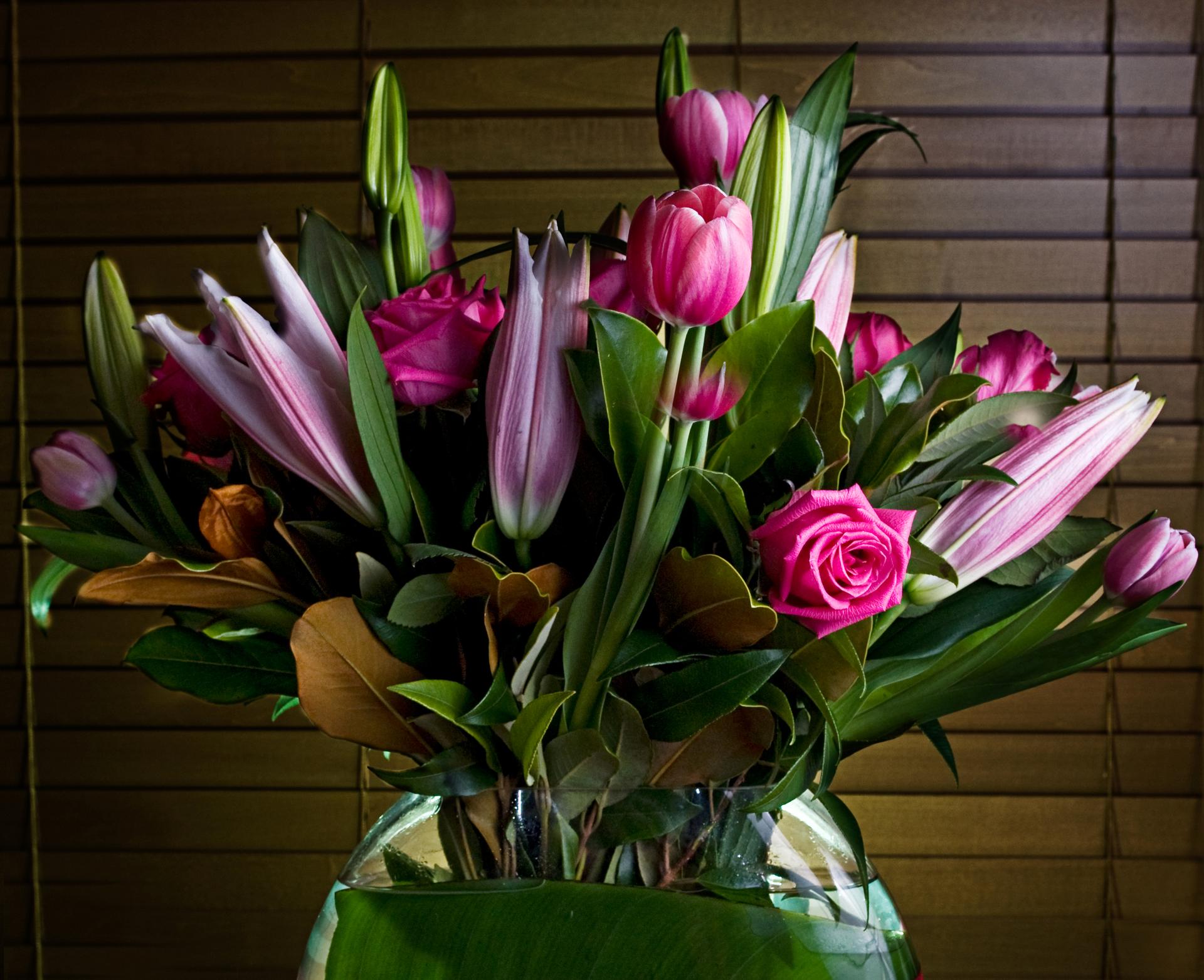 розовые тюльпаны в вазе