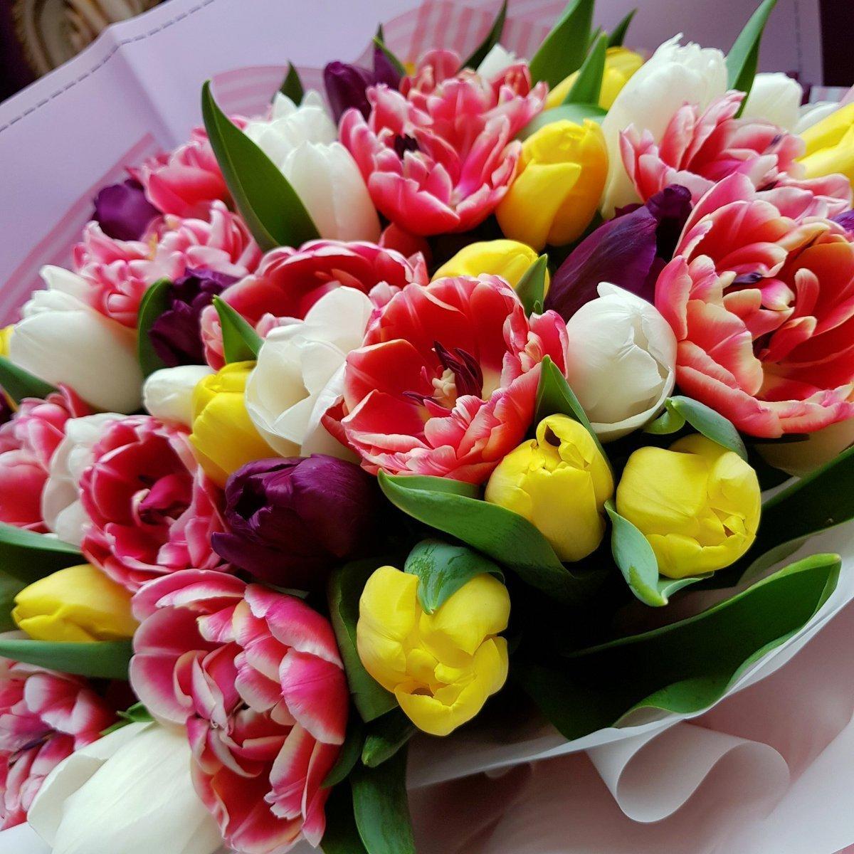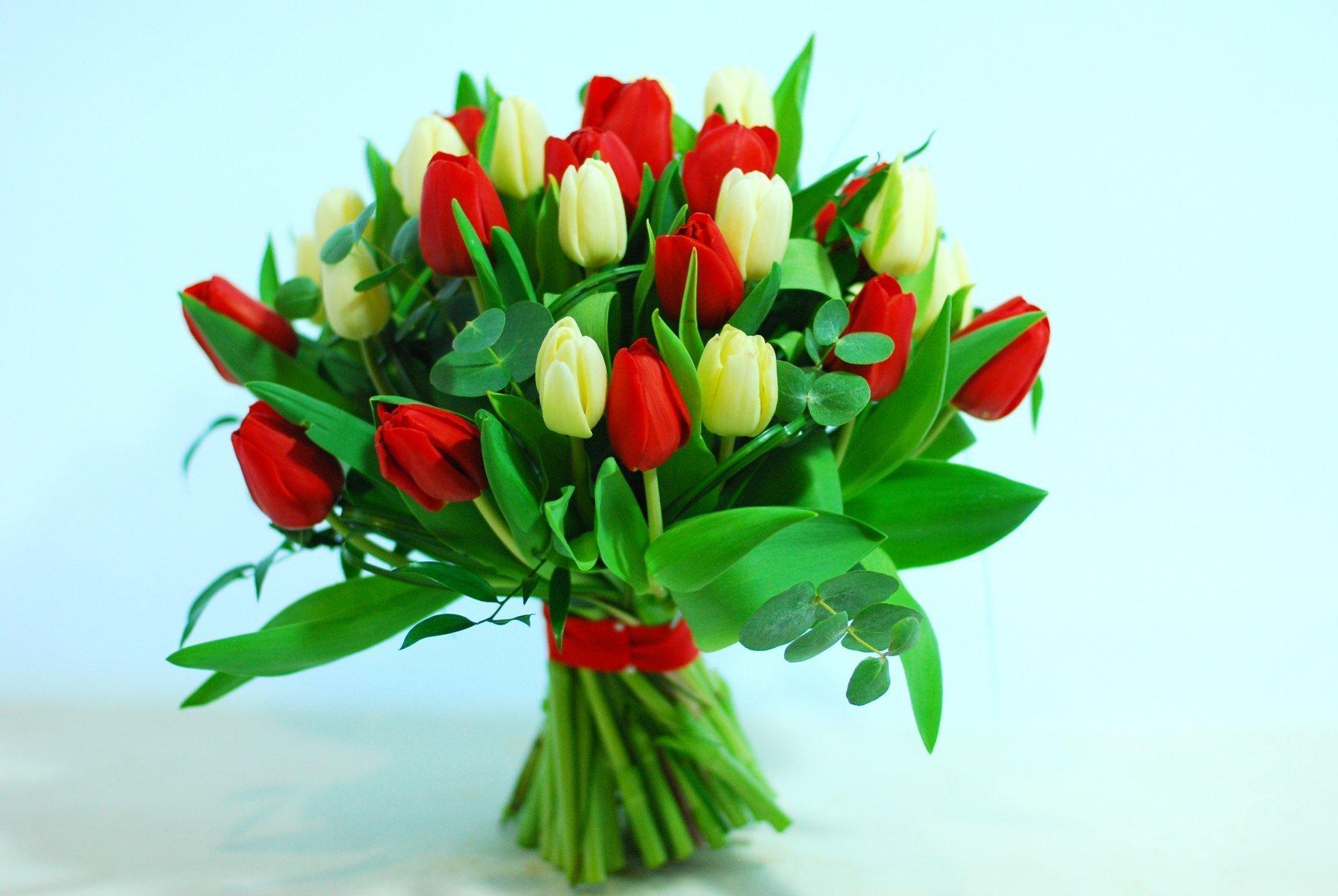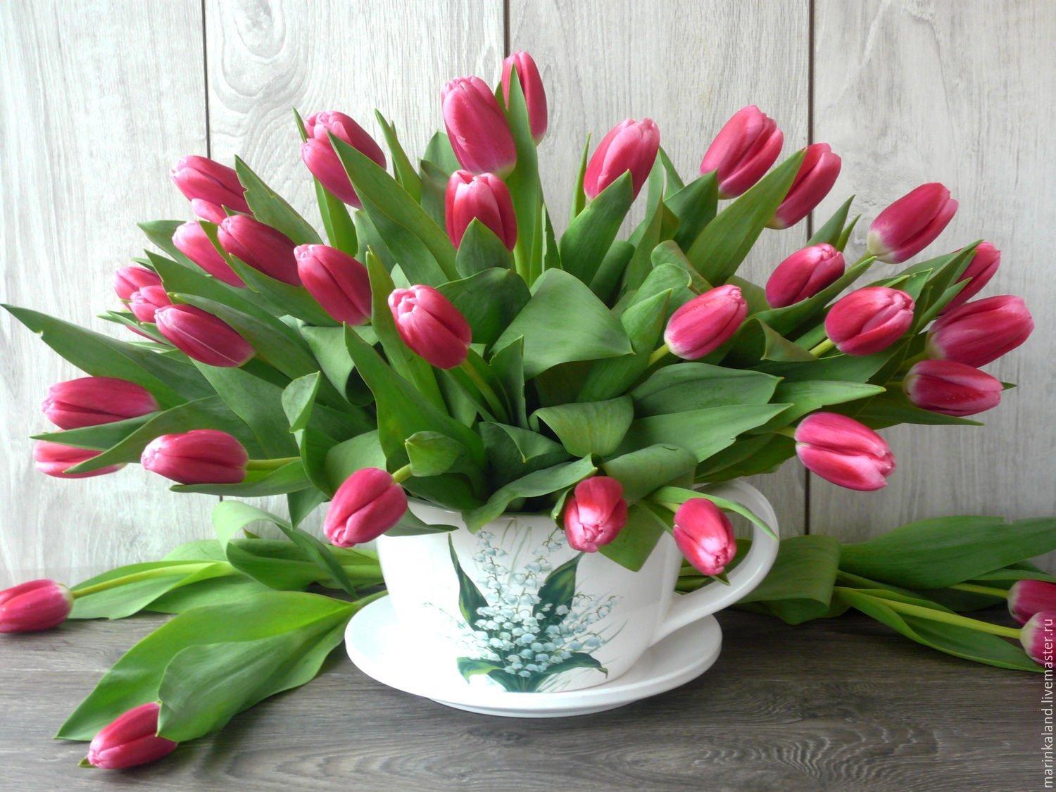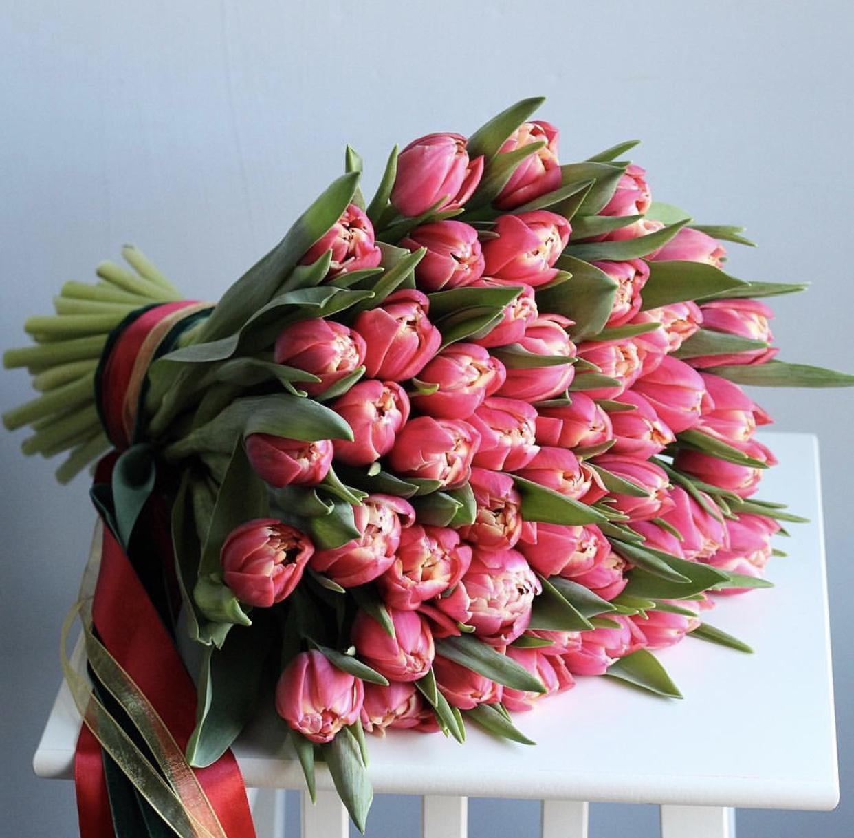 С цветами букеты тюльпаны