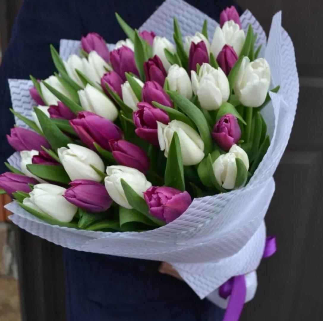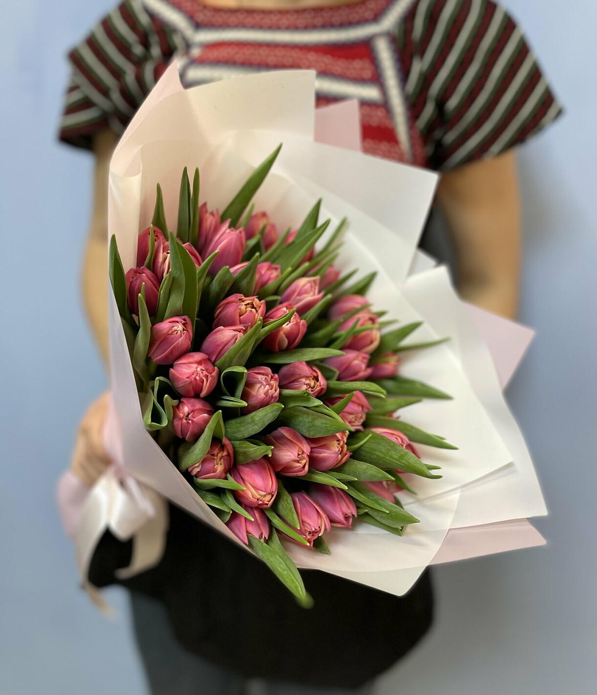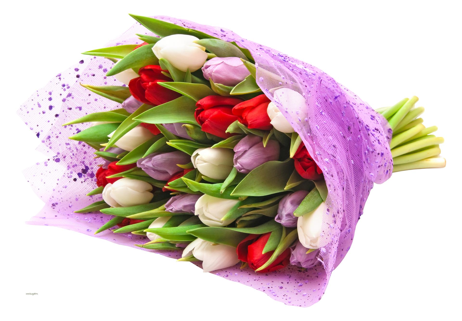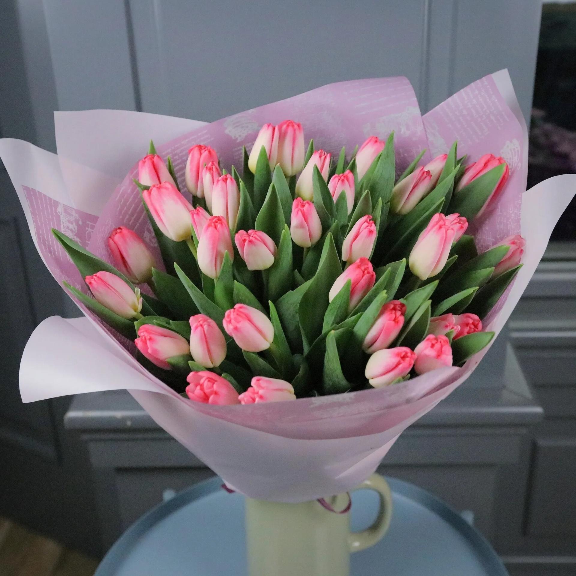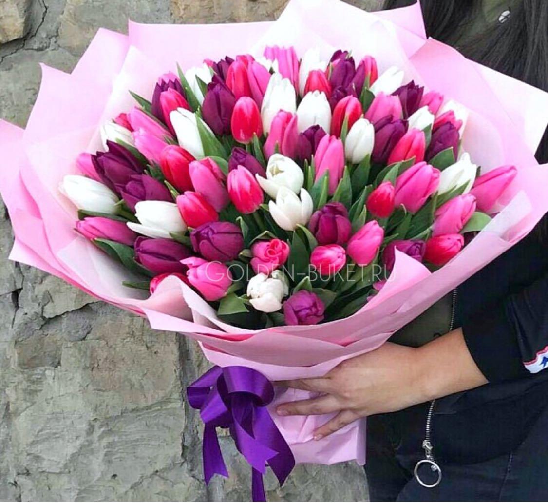 С цветами букеты тюльпаны