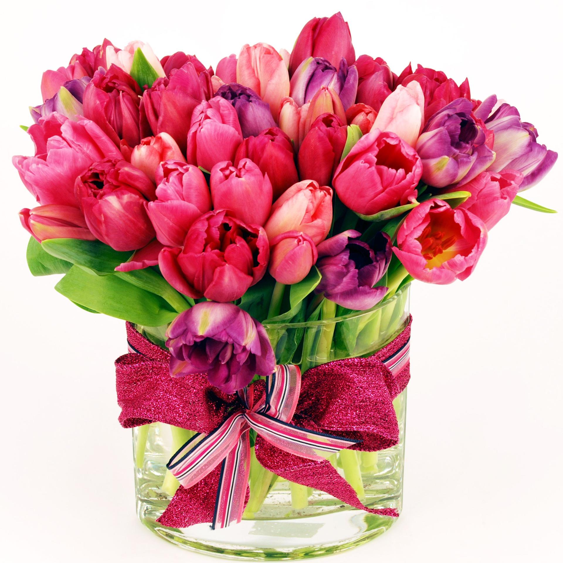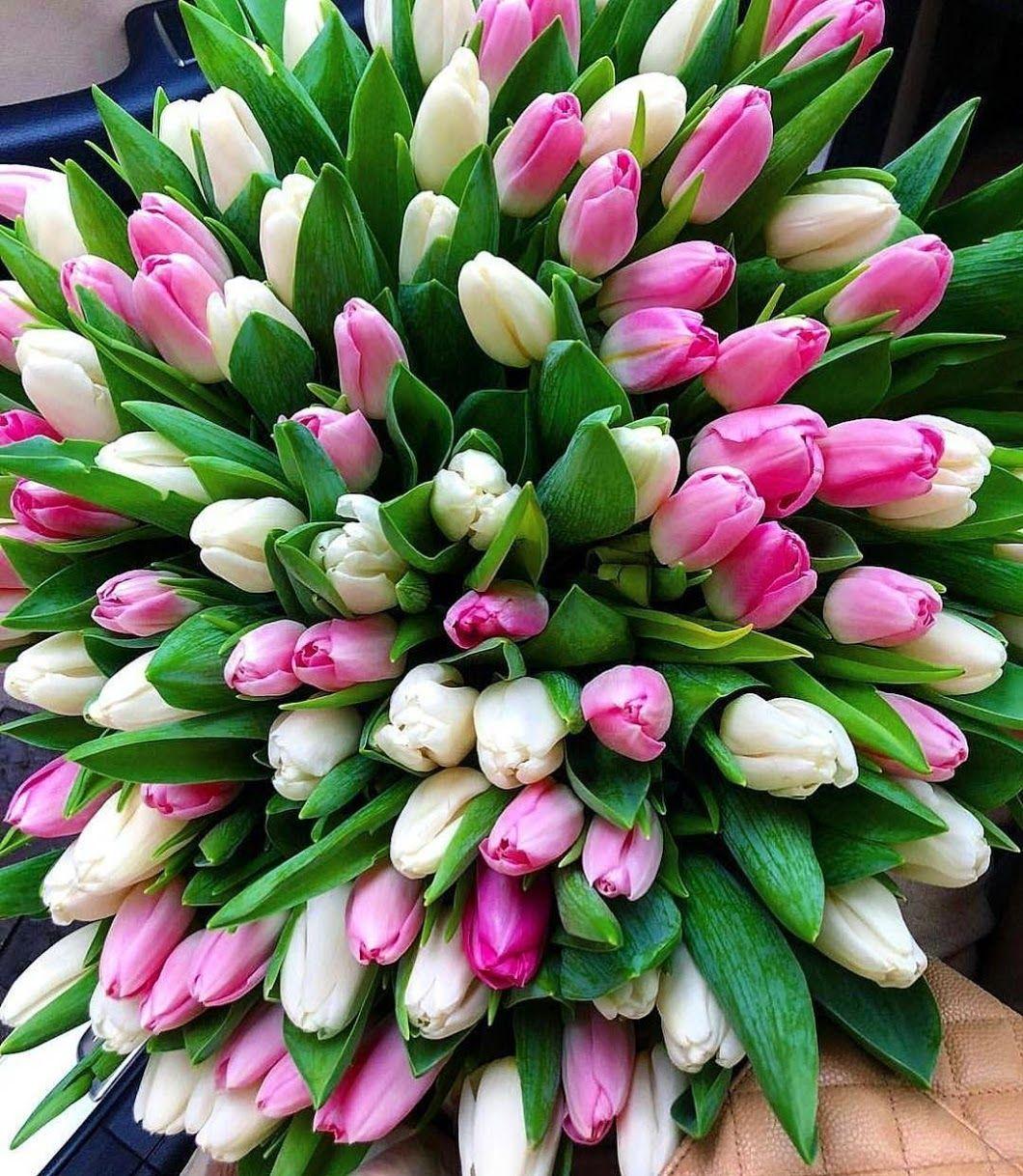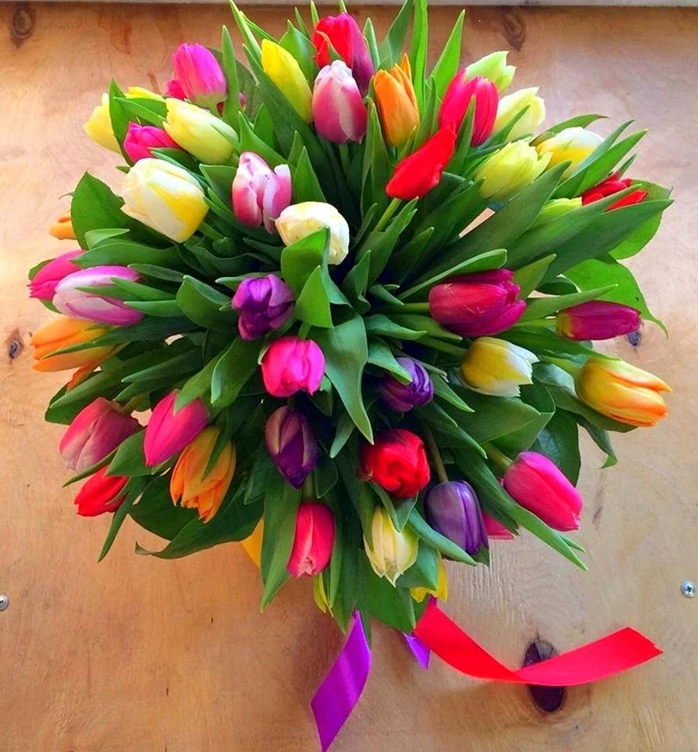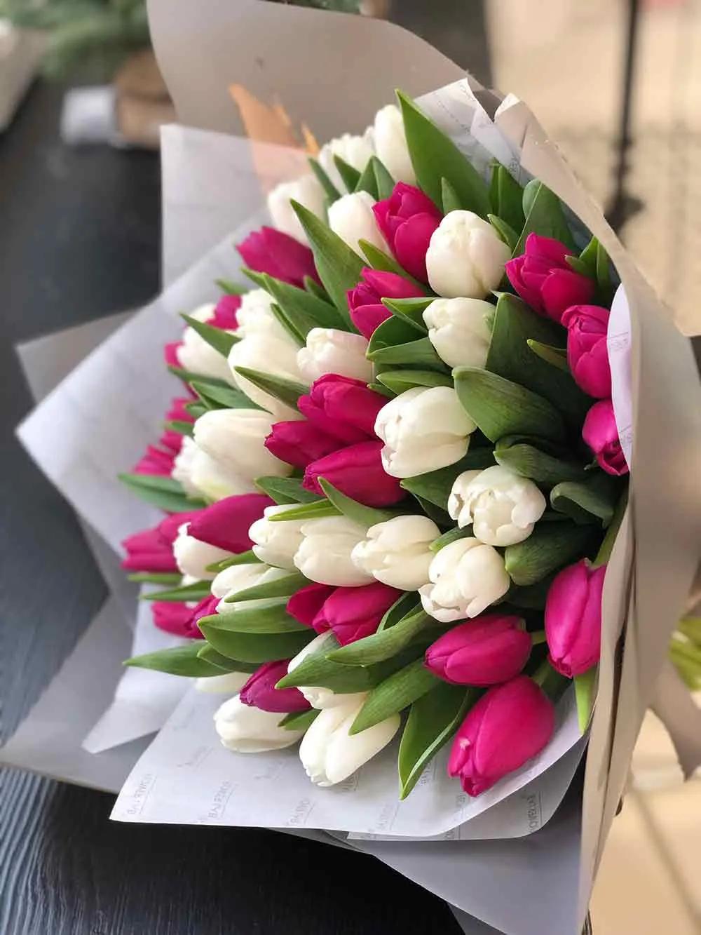 С цветами букеты тюльпаны