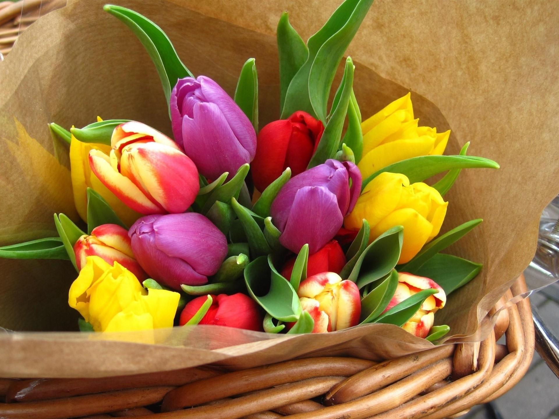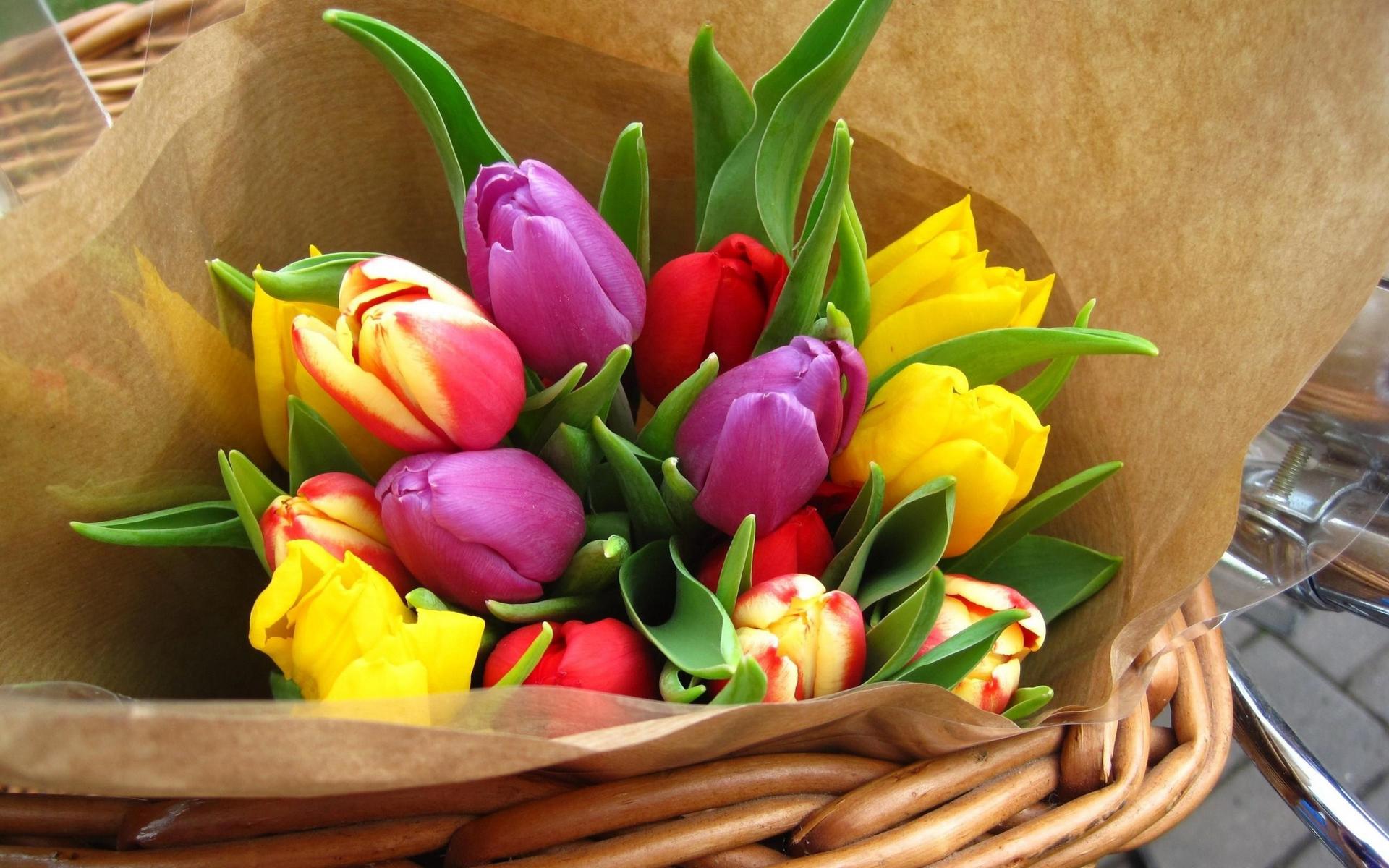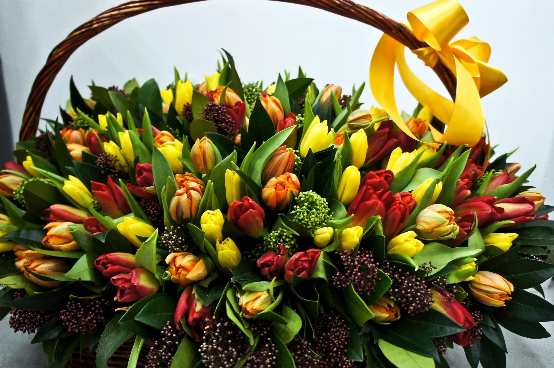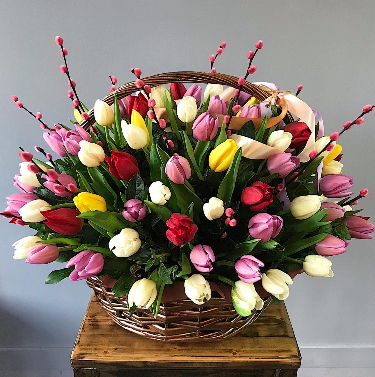 корзина с тюльпанами