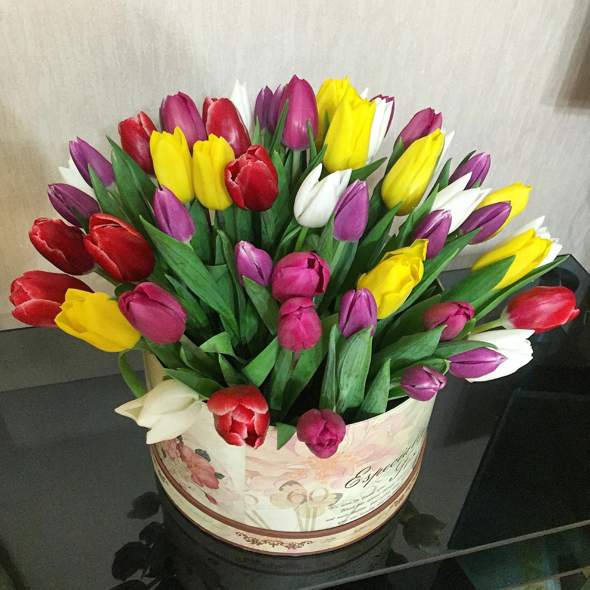 коробка с тюльпанами