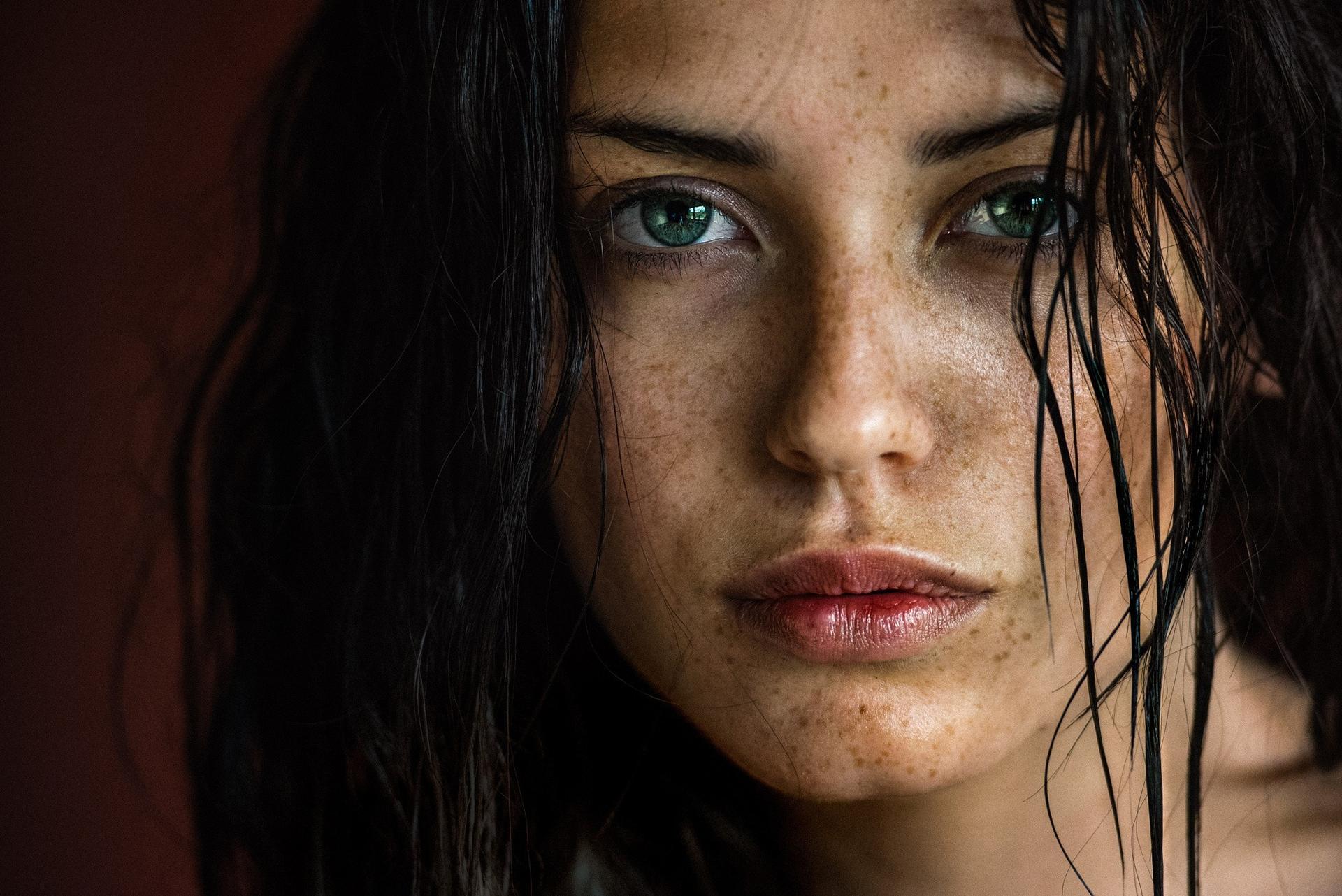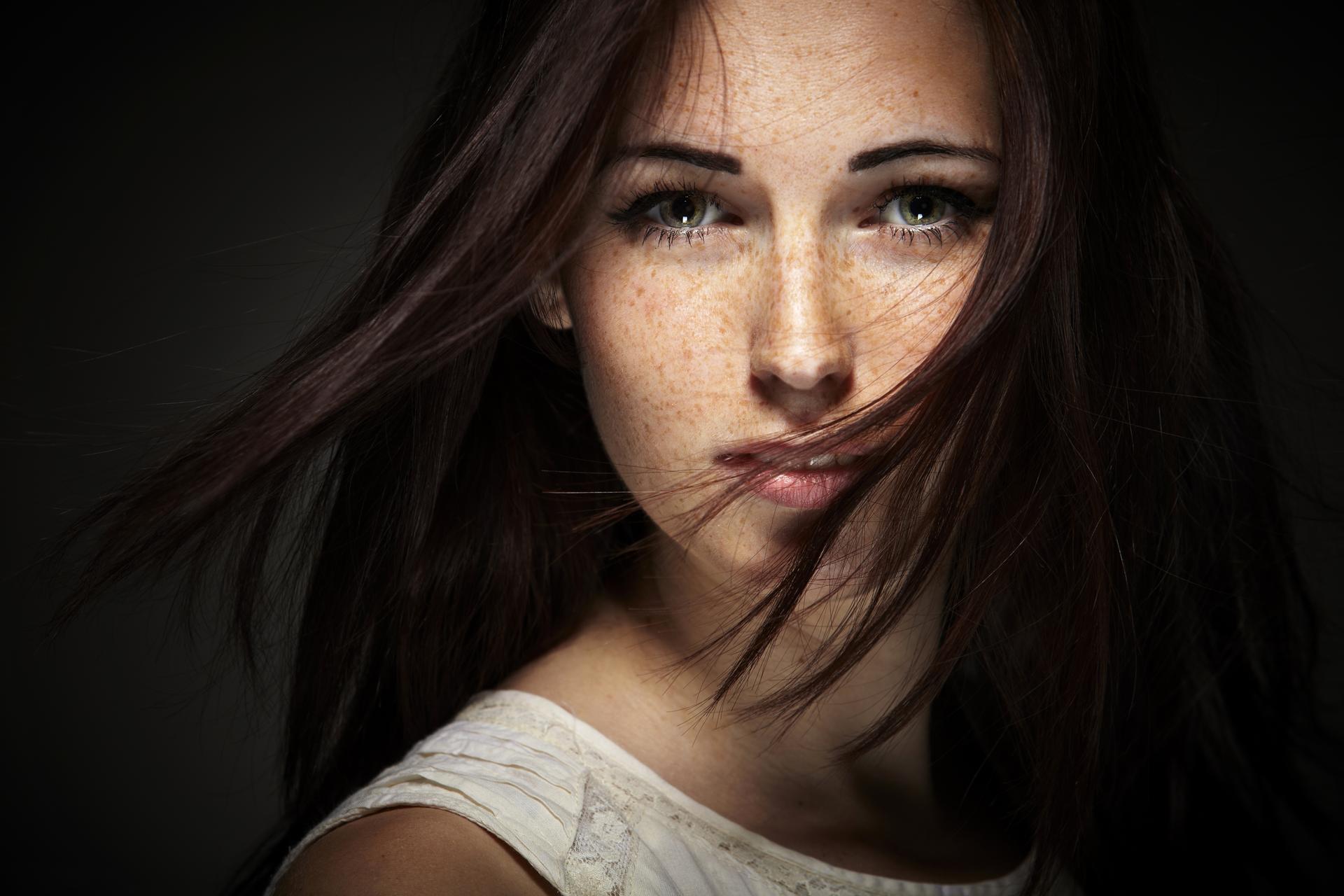 брюнетка с веснушками
