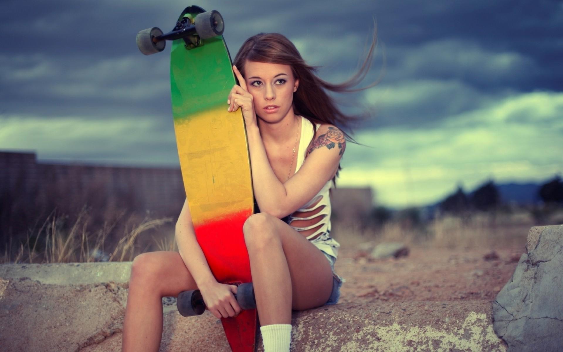 девушка со скейтом