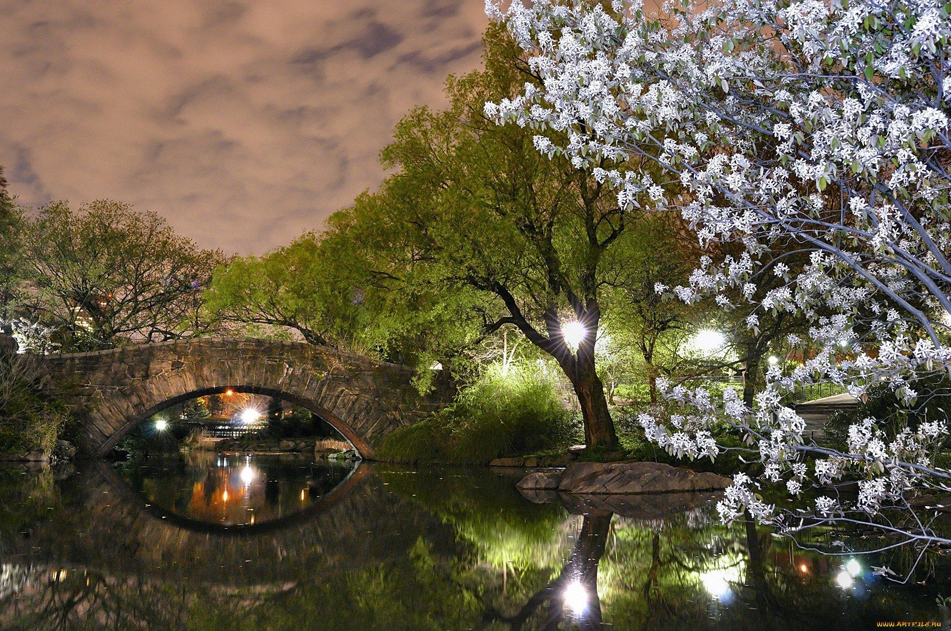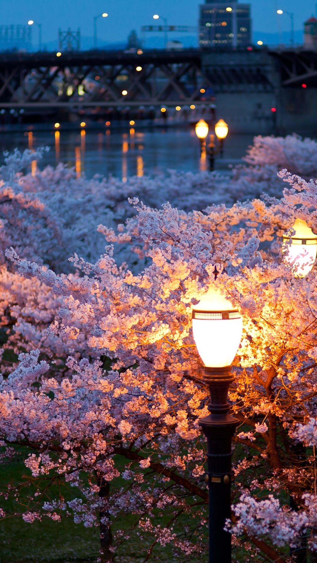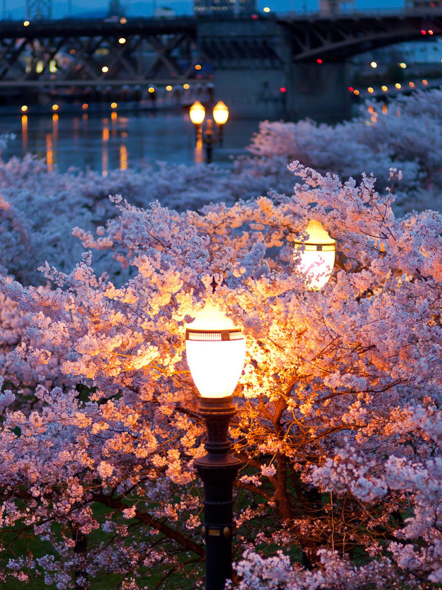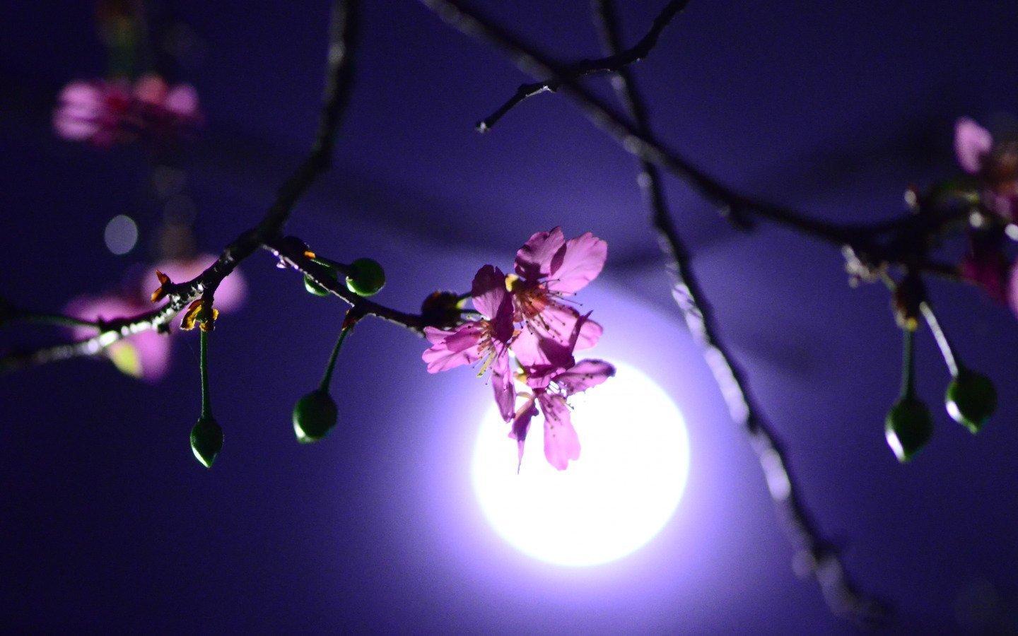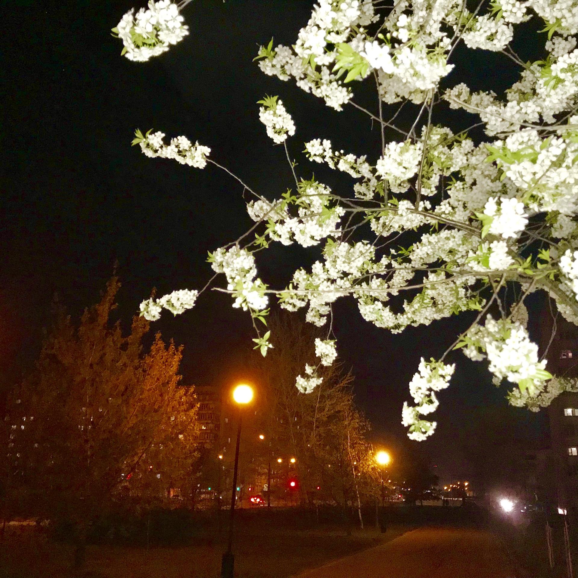 цветущая вишня ночью
