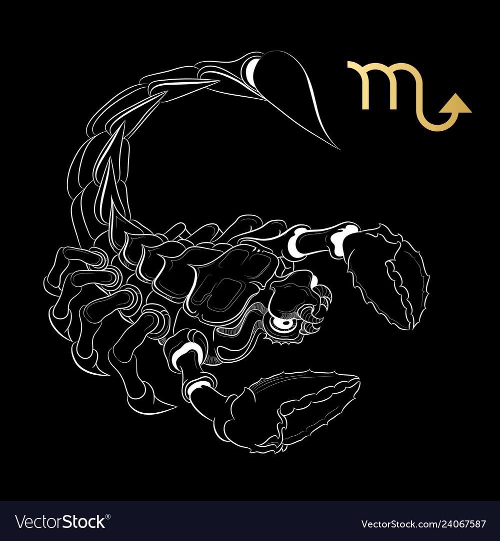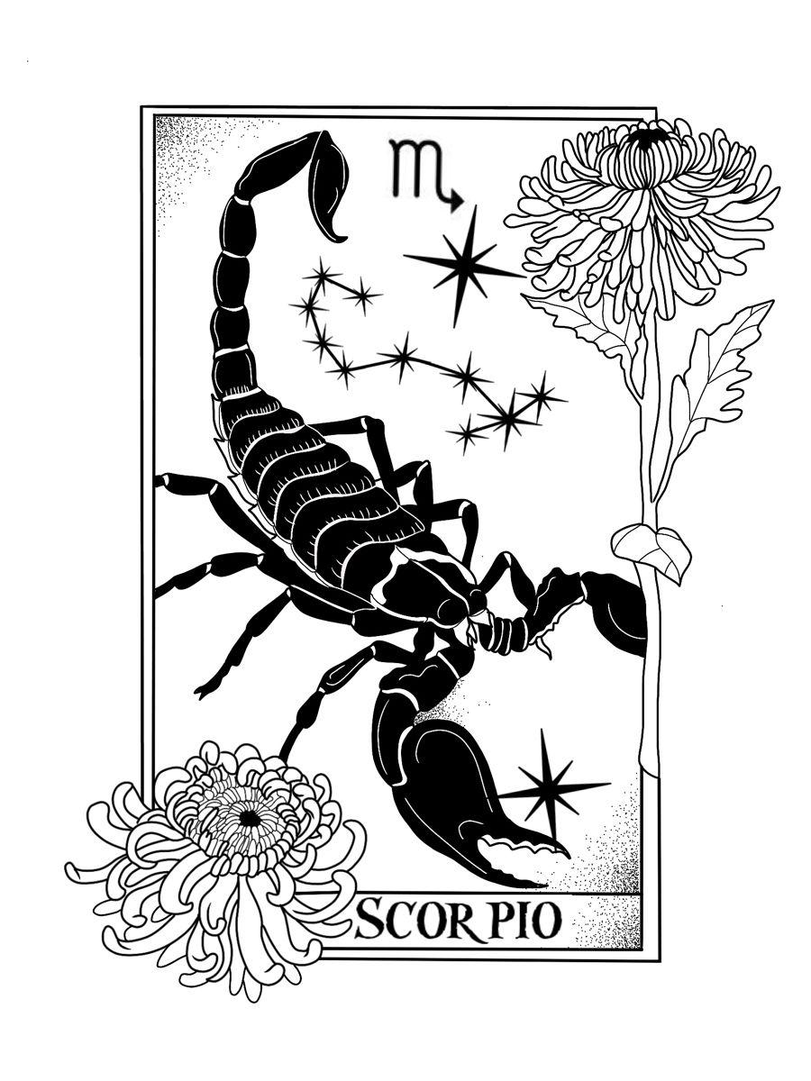 скорпион черно белый рисунок