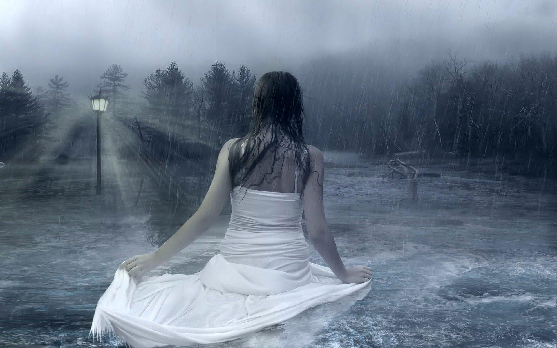 девушка под дождем