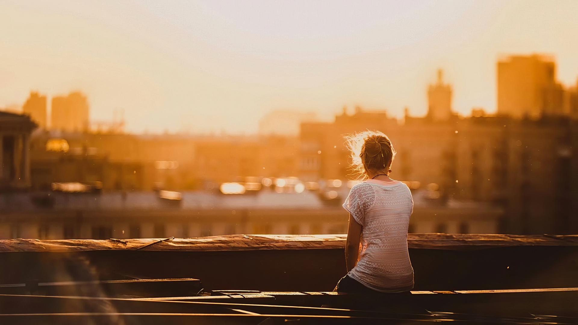закат девушка