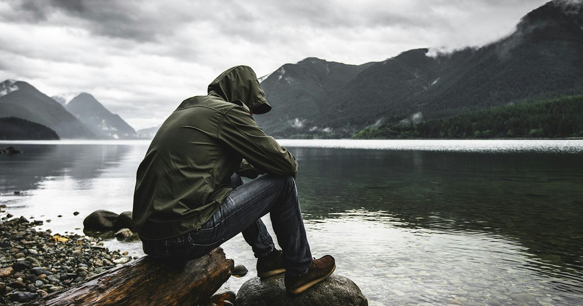 одинокий мужчина под дождем