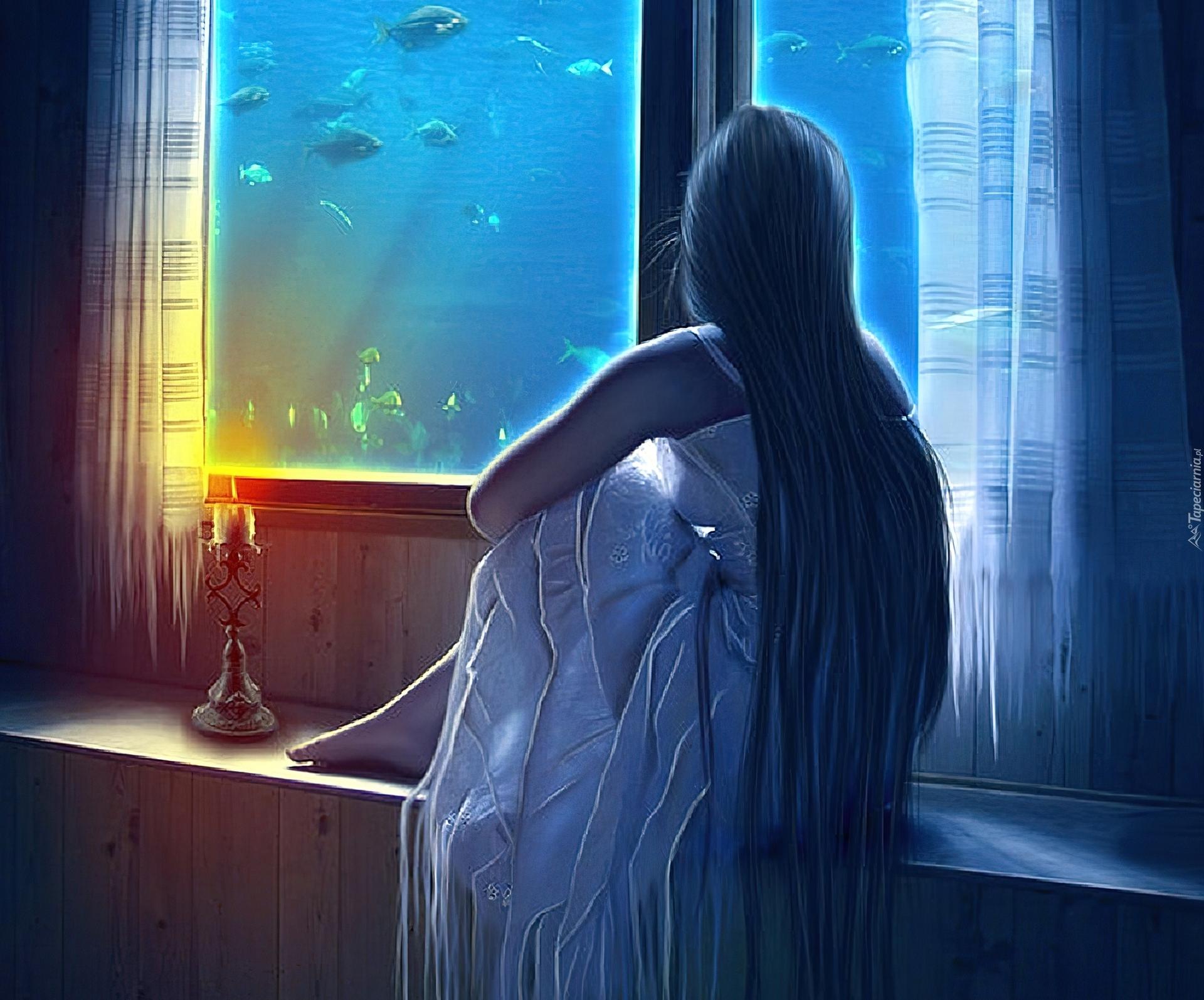 девочка смотрит в окно