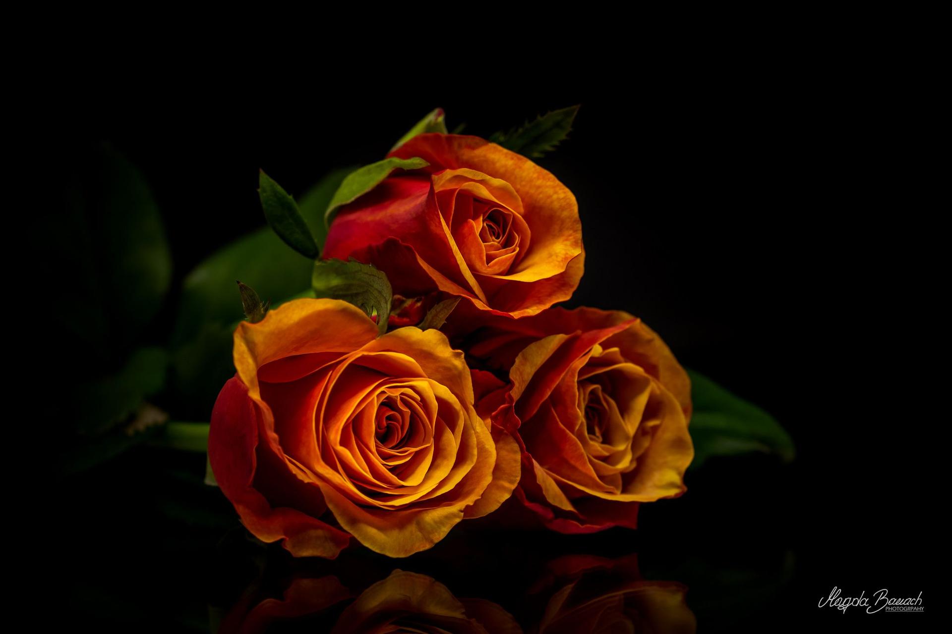 оранжево красные розы