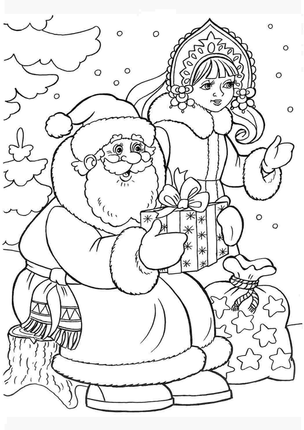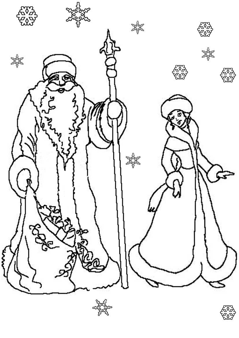 раскраска деда мороза и снегурочки