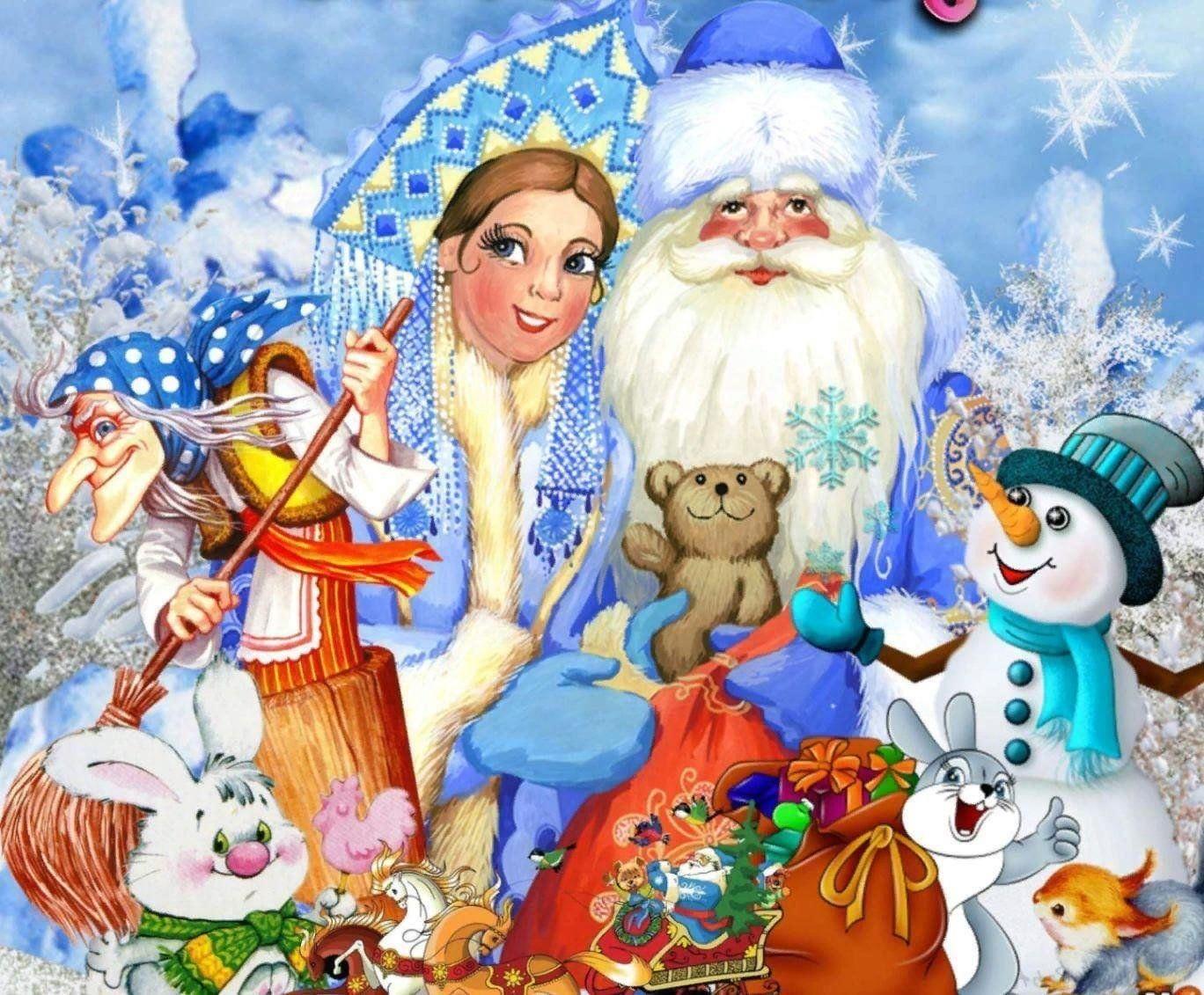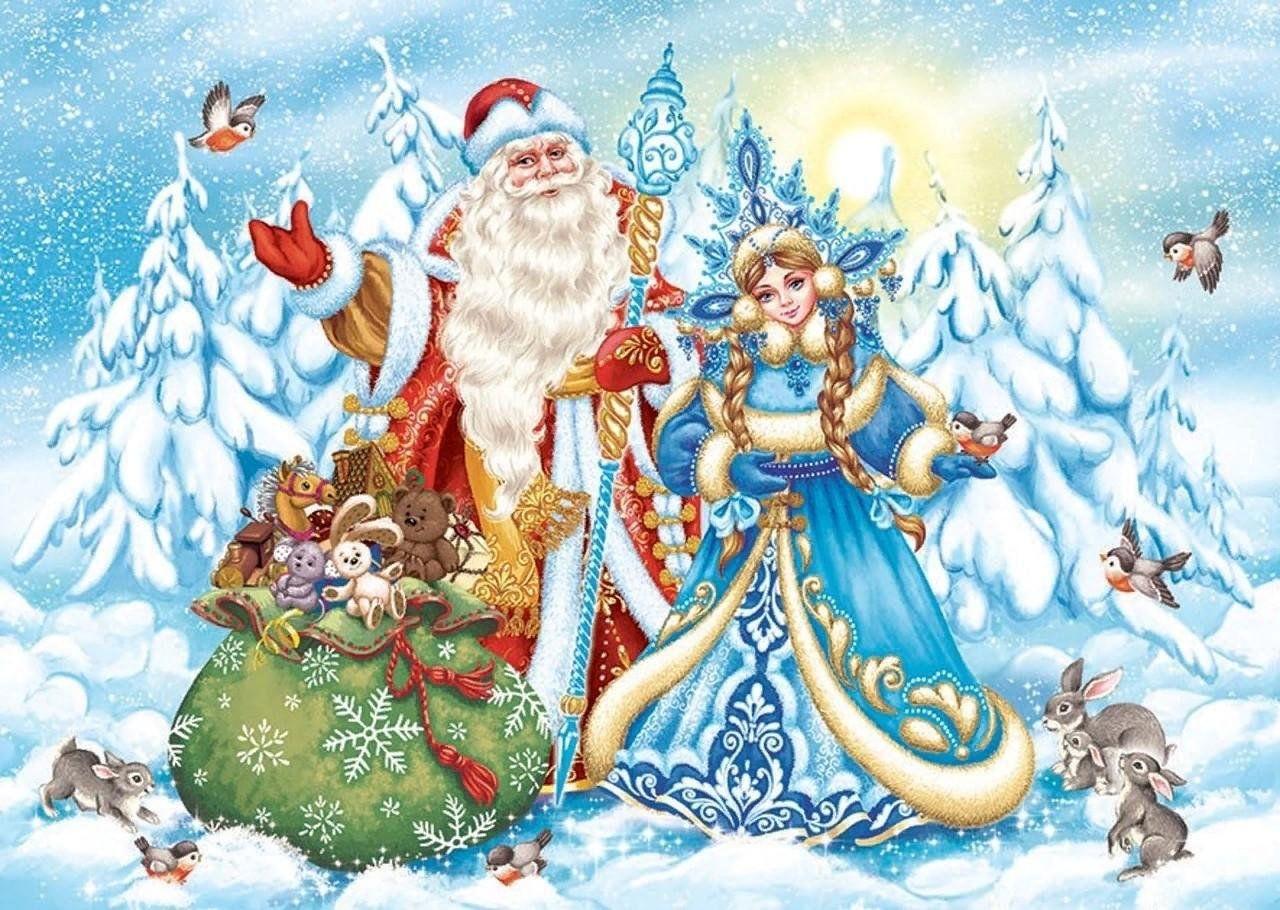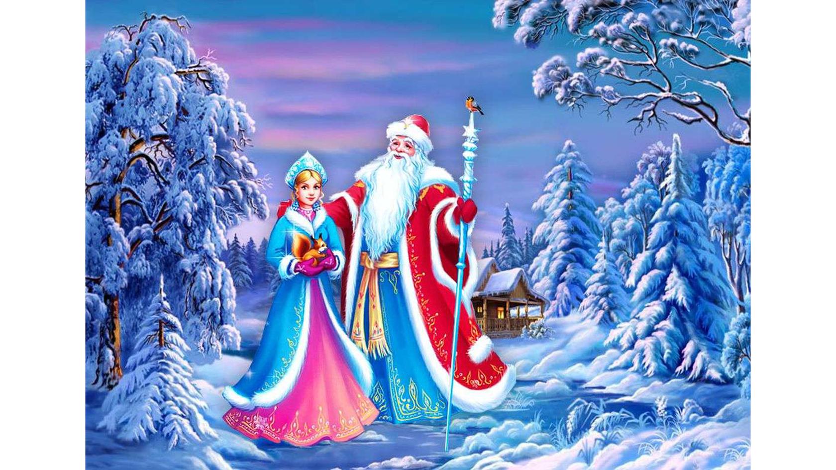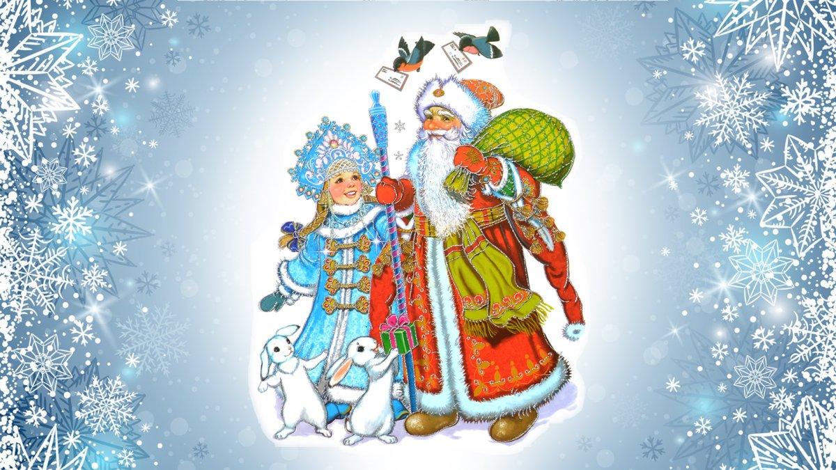 новогодний фон с дедом морозом и снегурочкой