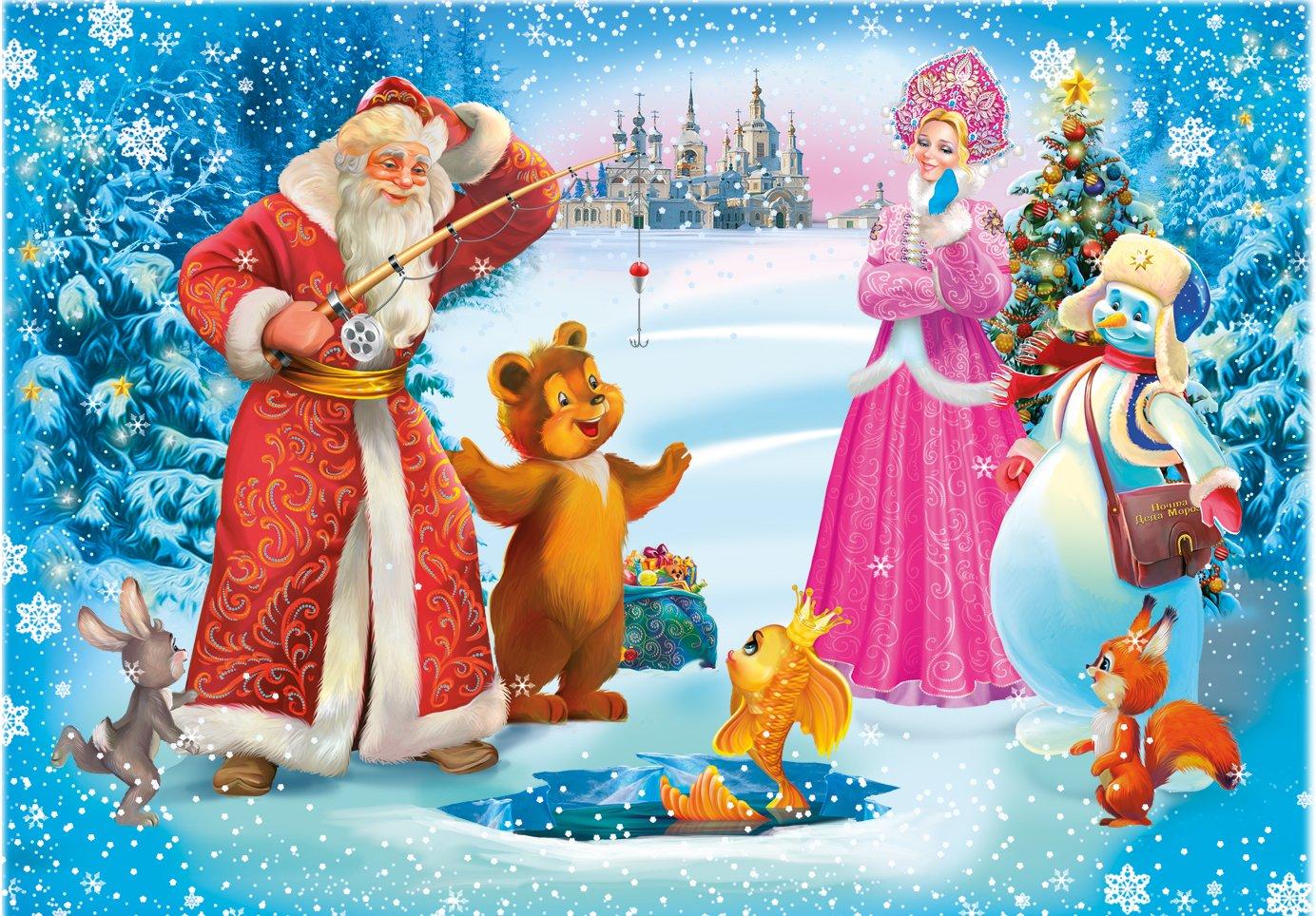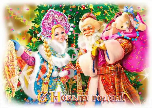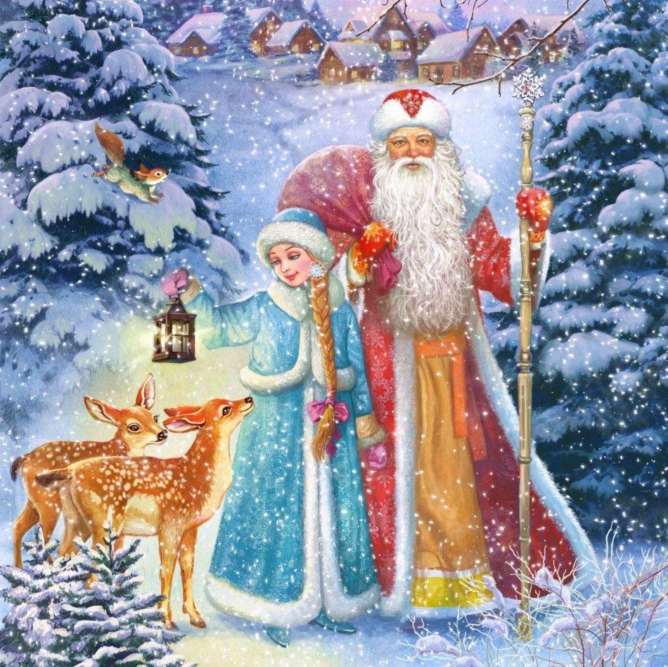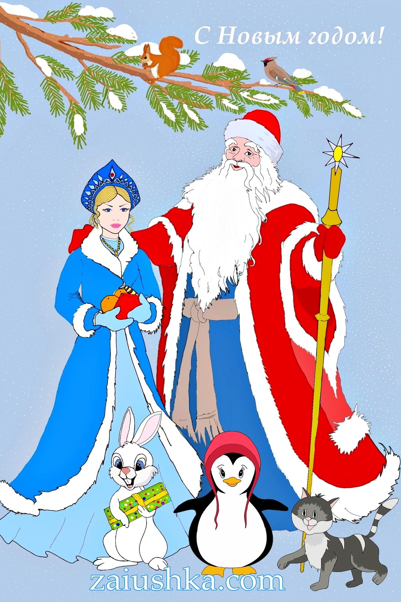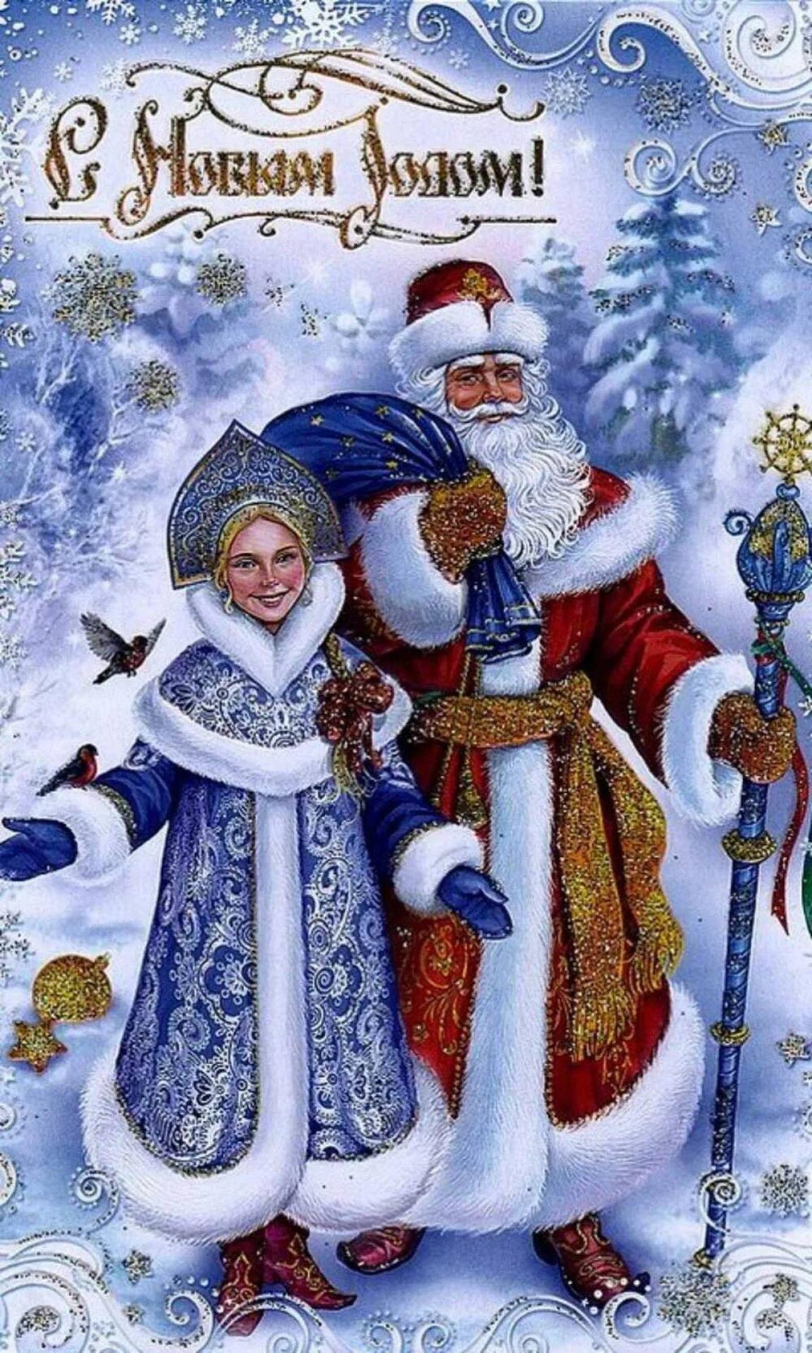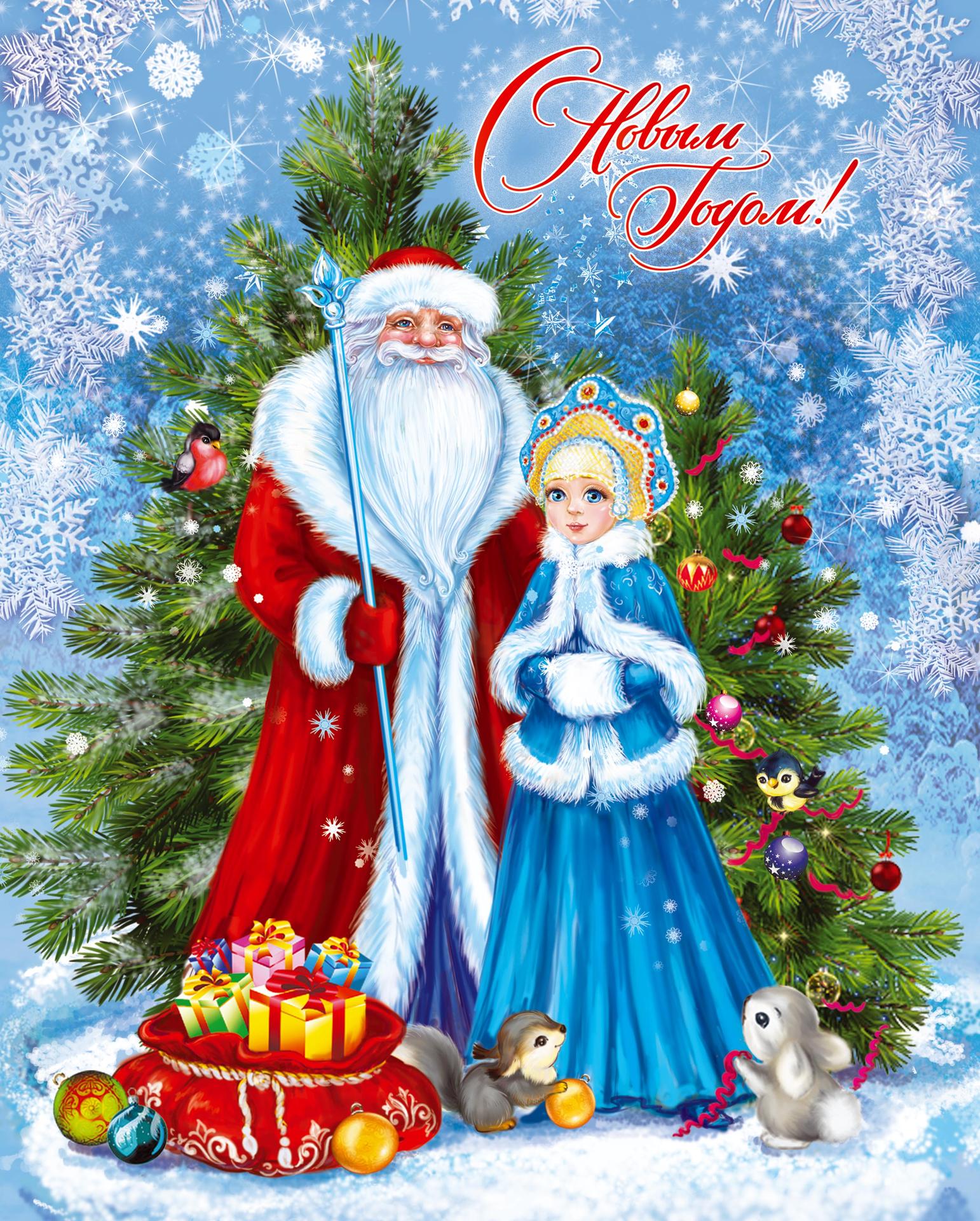 новогодние открытки с дедом морозом и снегурочкой