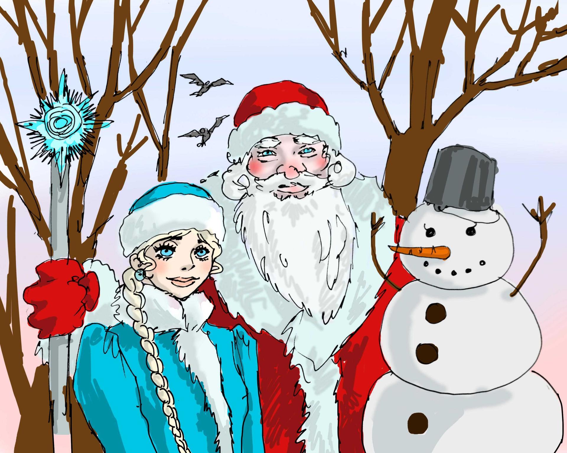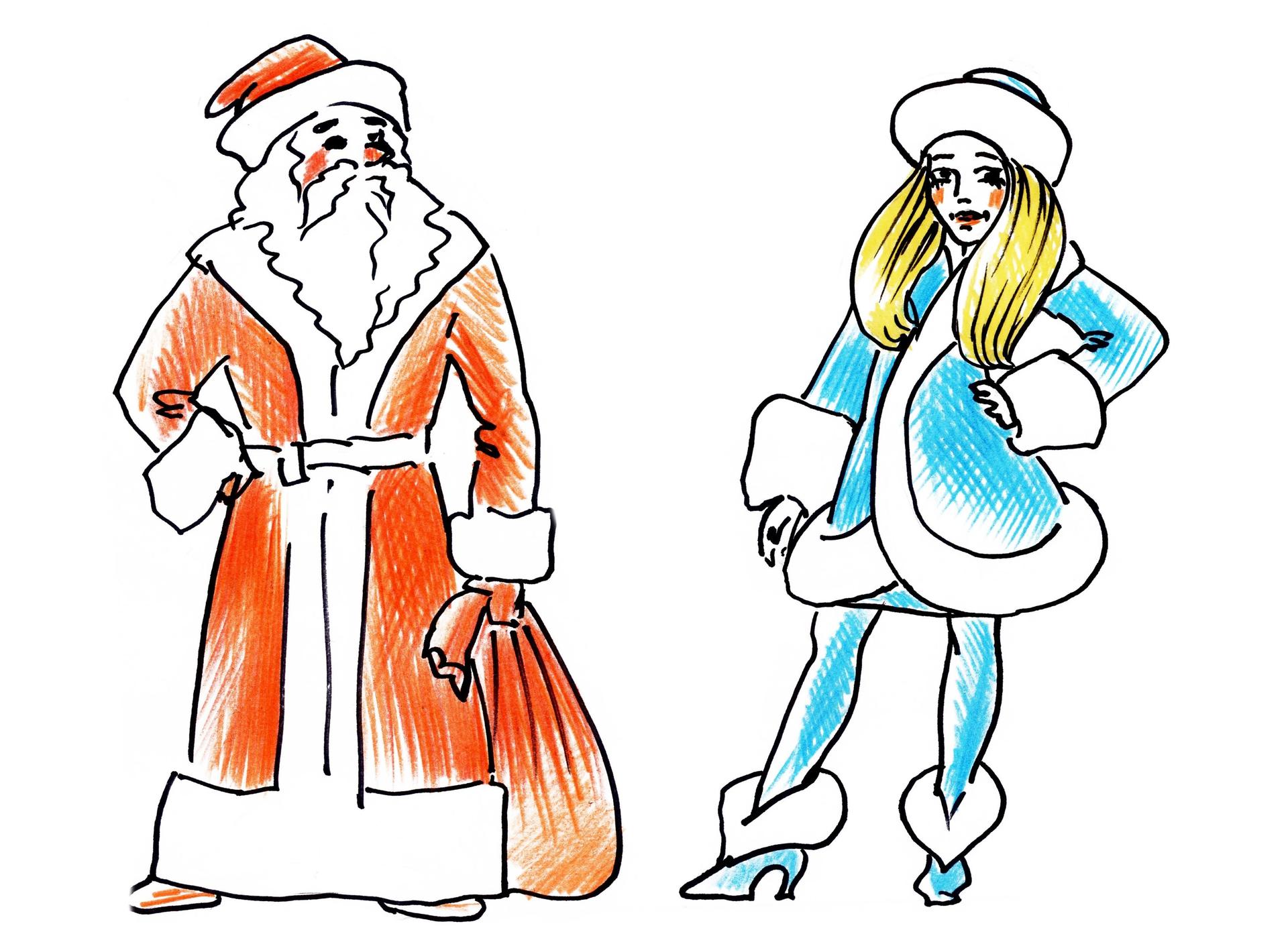 рисунок деда мороза и снегурочки
