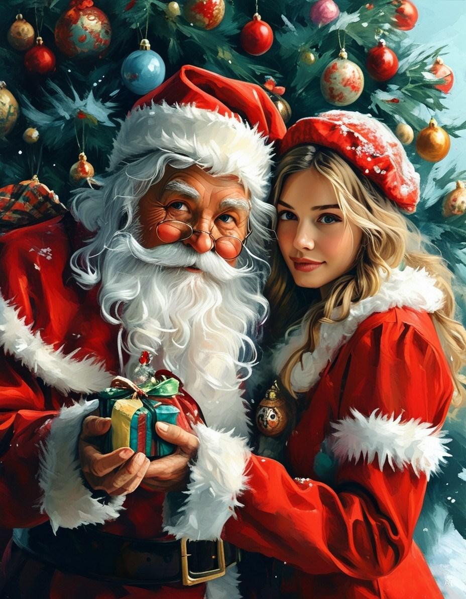 рисунок деда мороза и снегурочки вместе