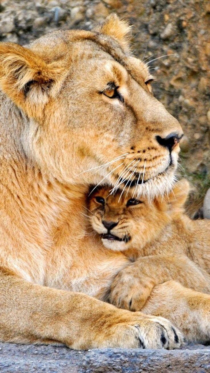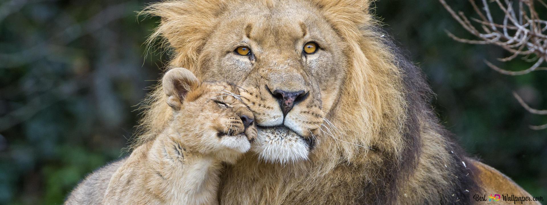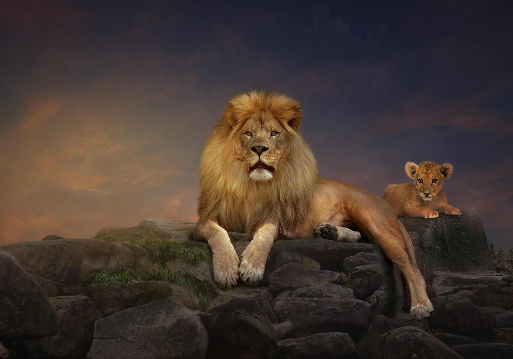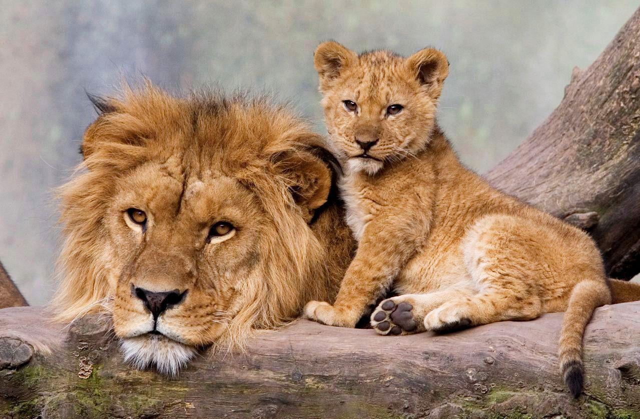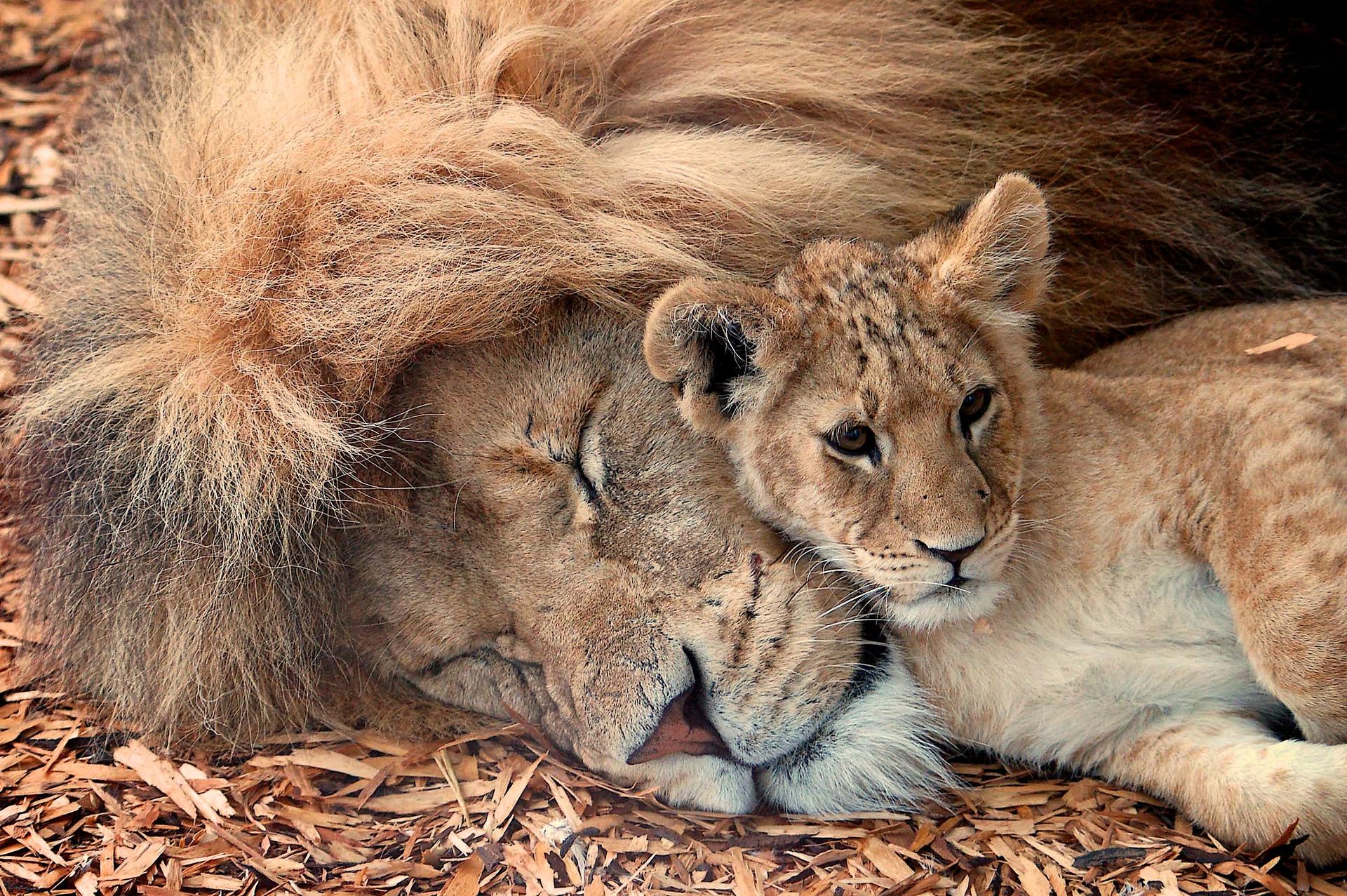 лев с львенком