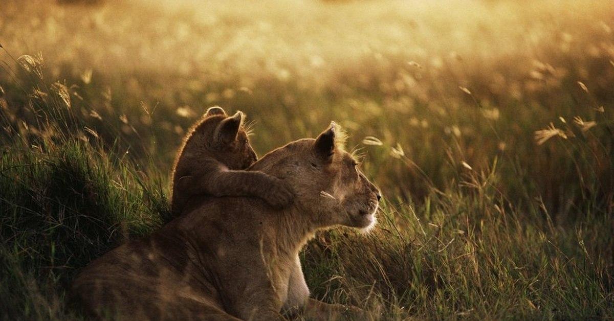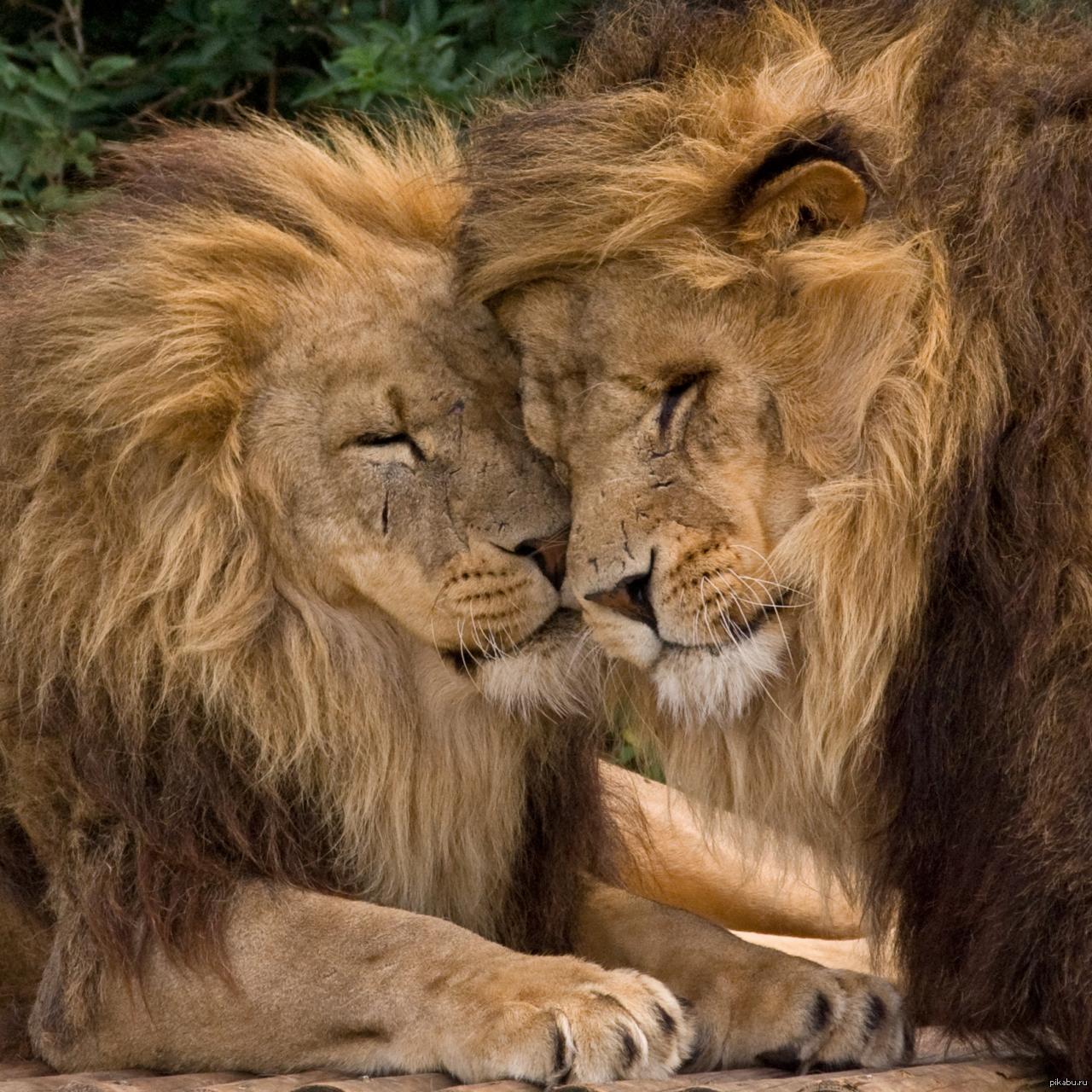 львы обнимаются