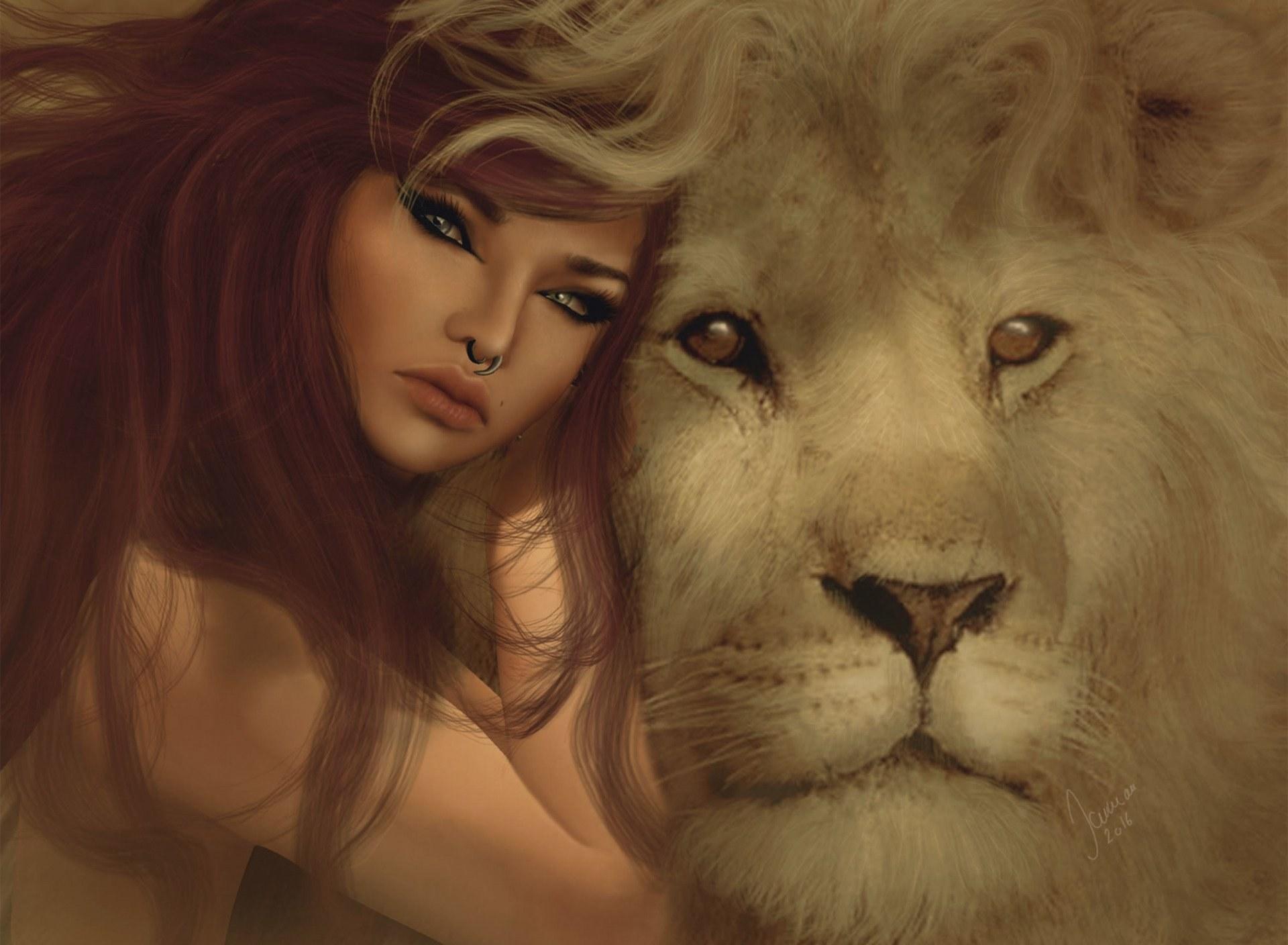 девушка со львом