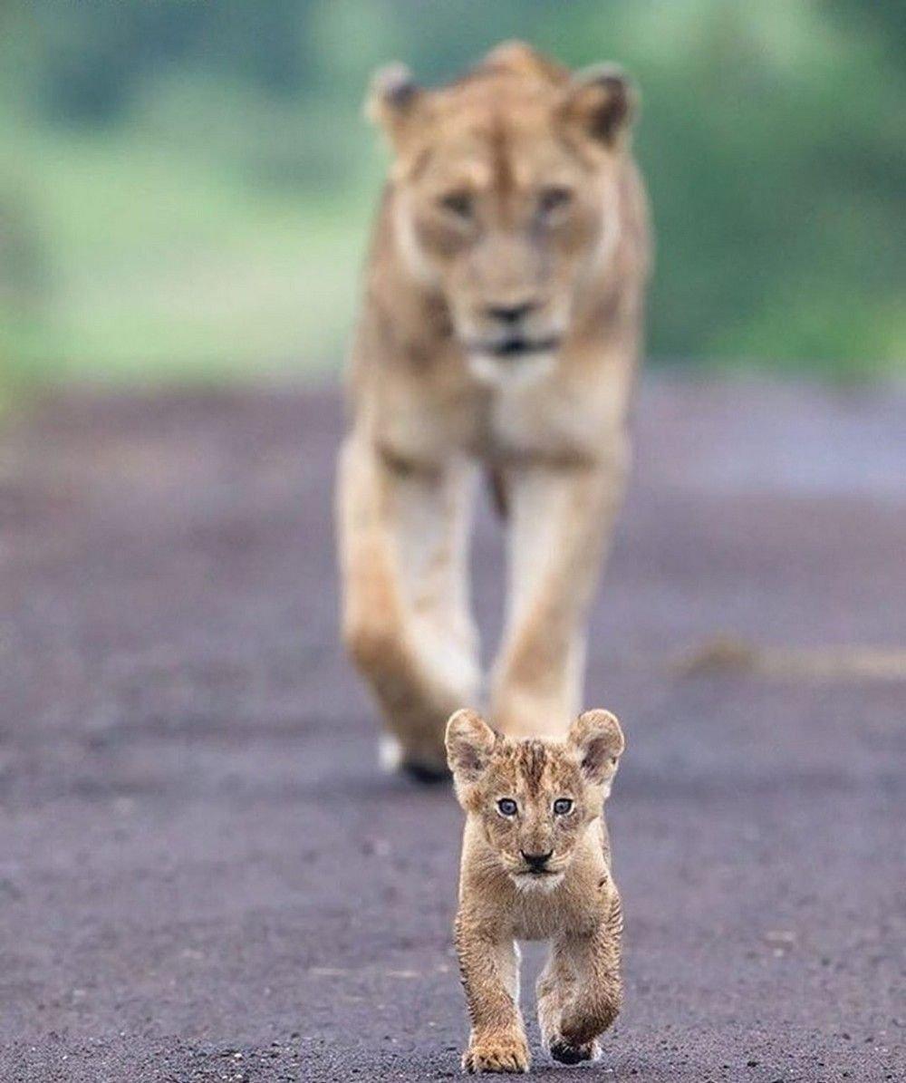 львица с львенком