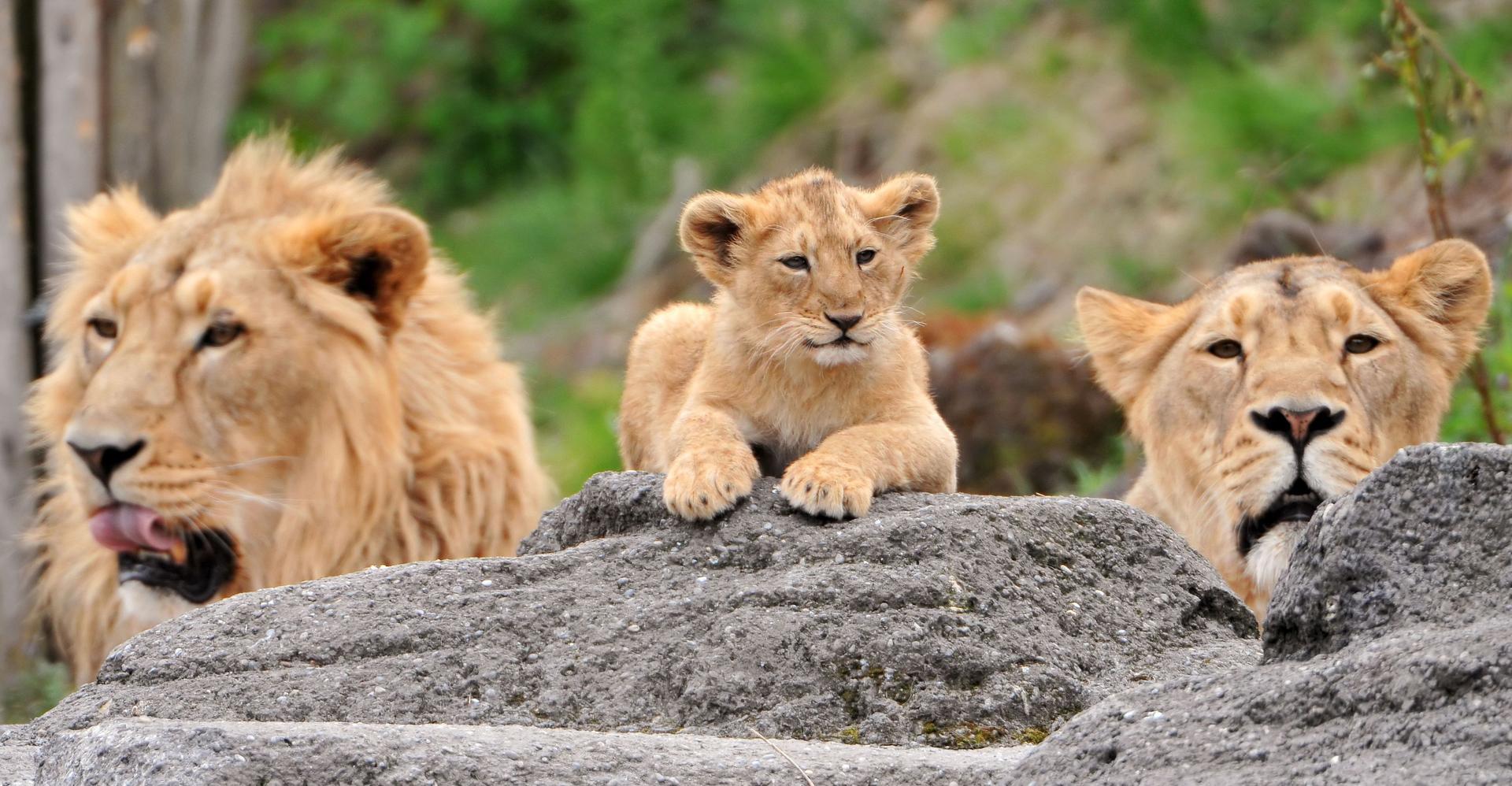 львица с двумя львятами
