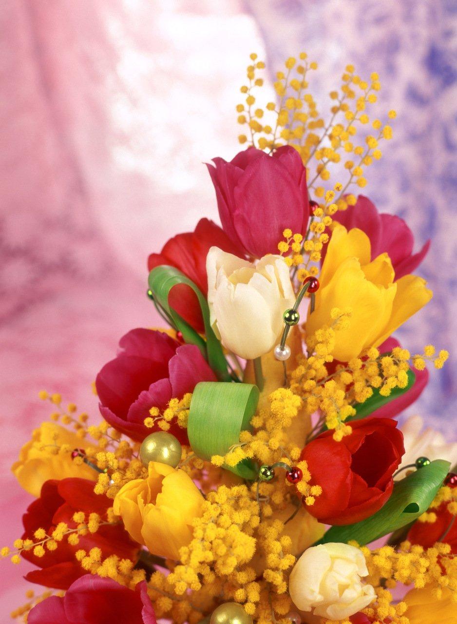 мимоза с тюльпанами