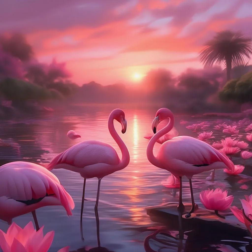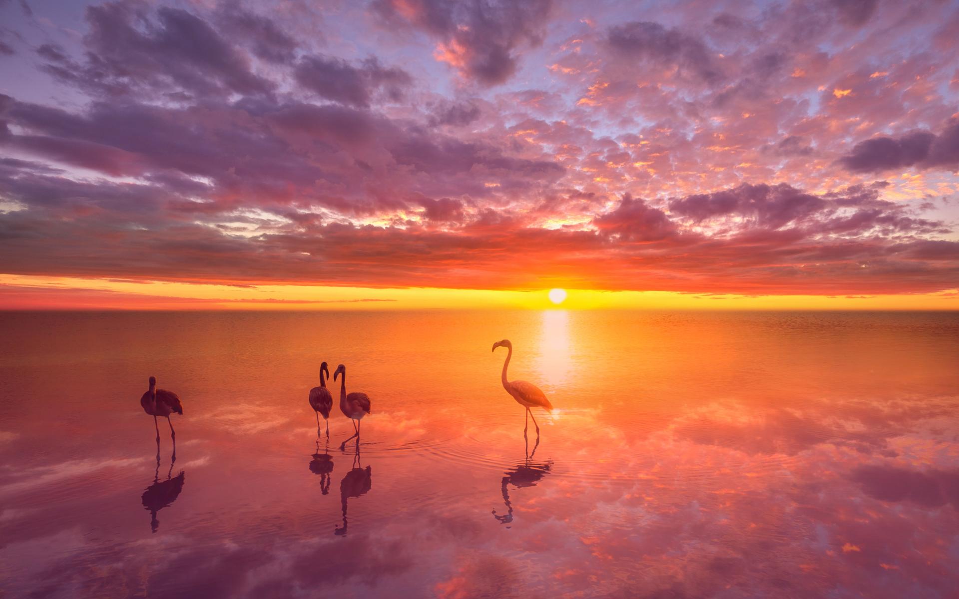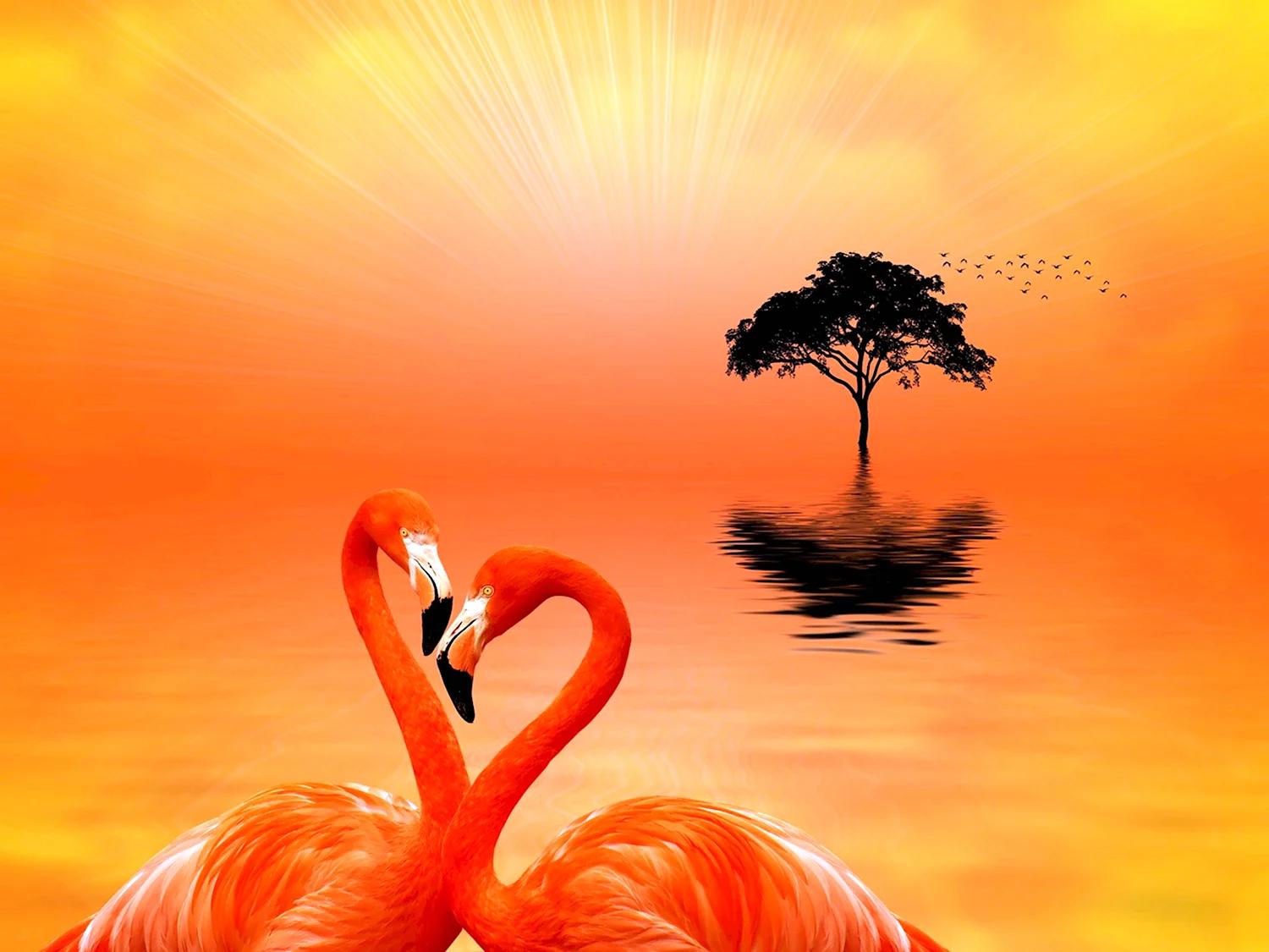 фламинго на закате