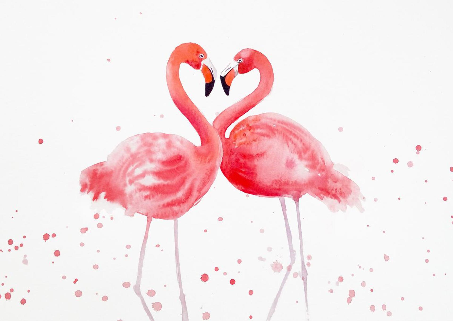 фламинго акварелью