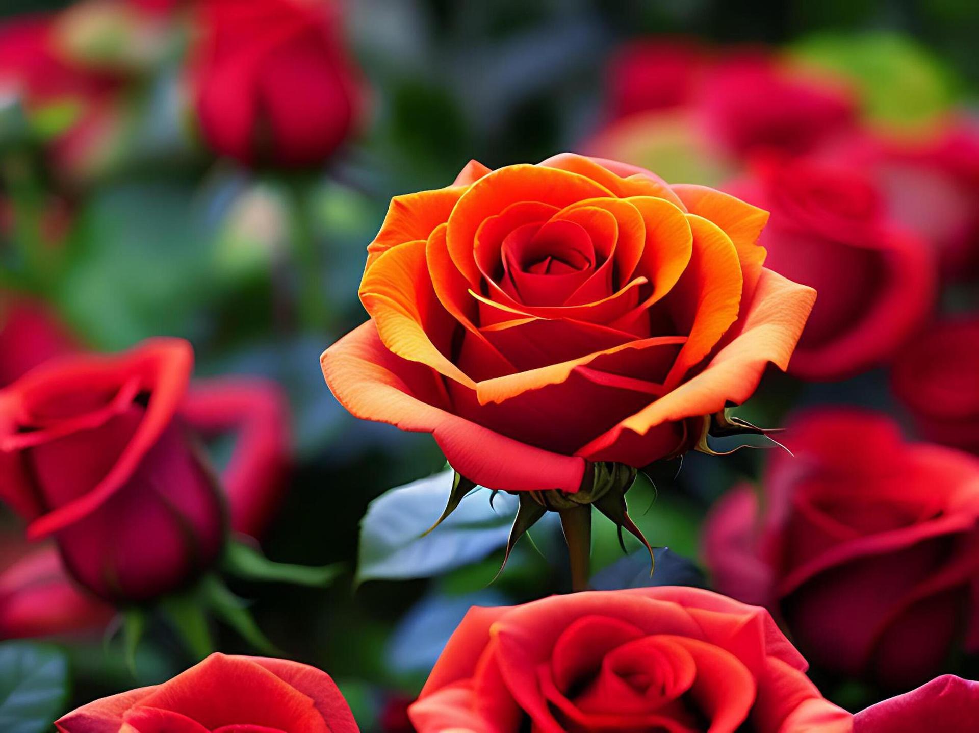 оранжево красные розы