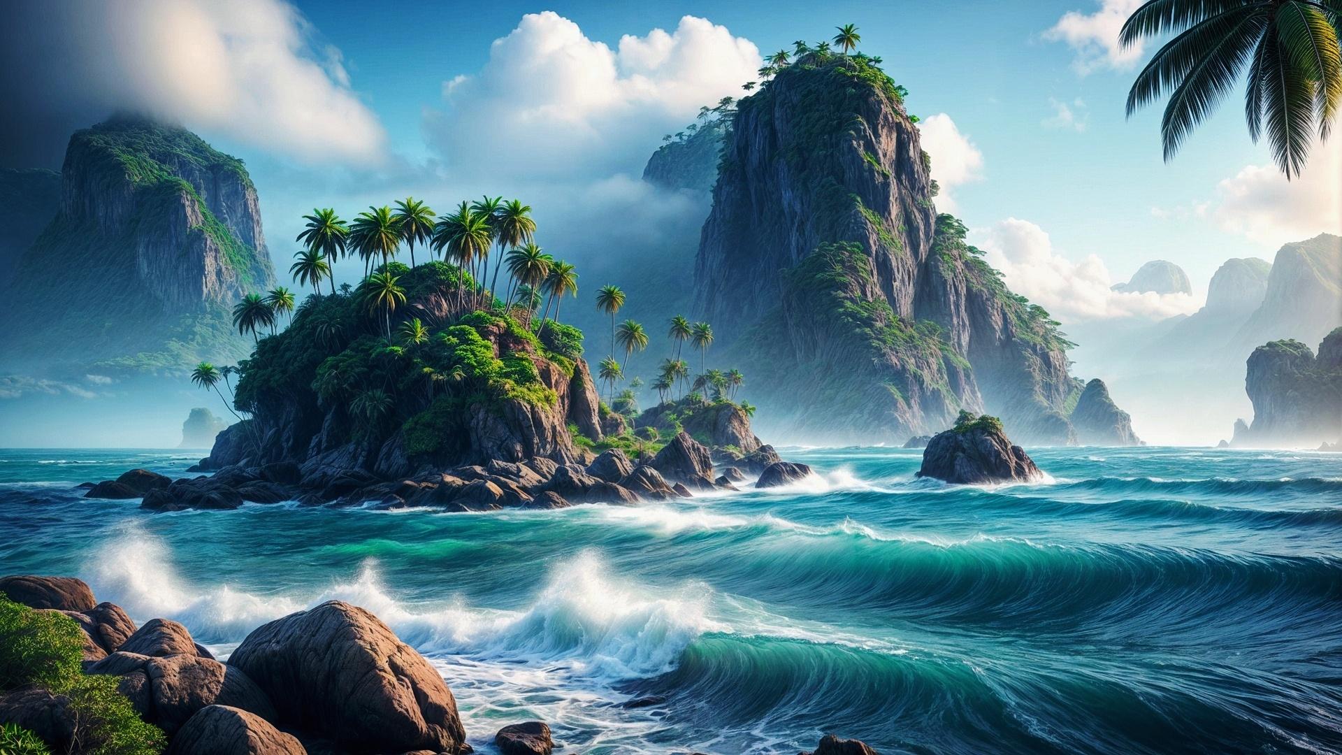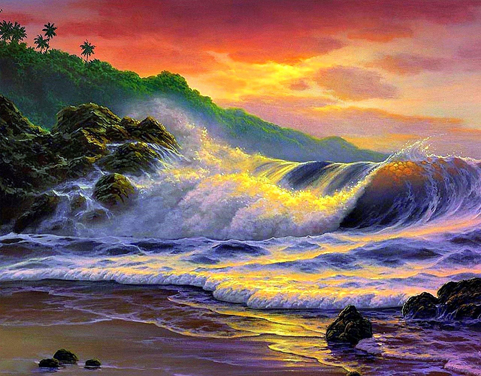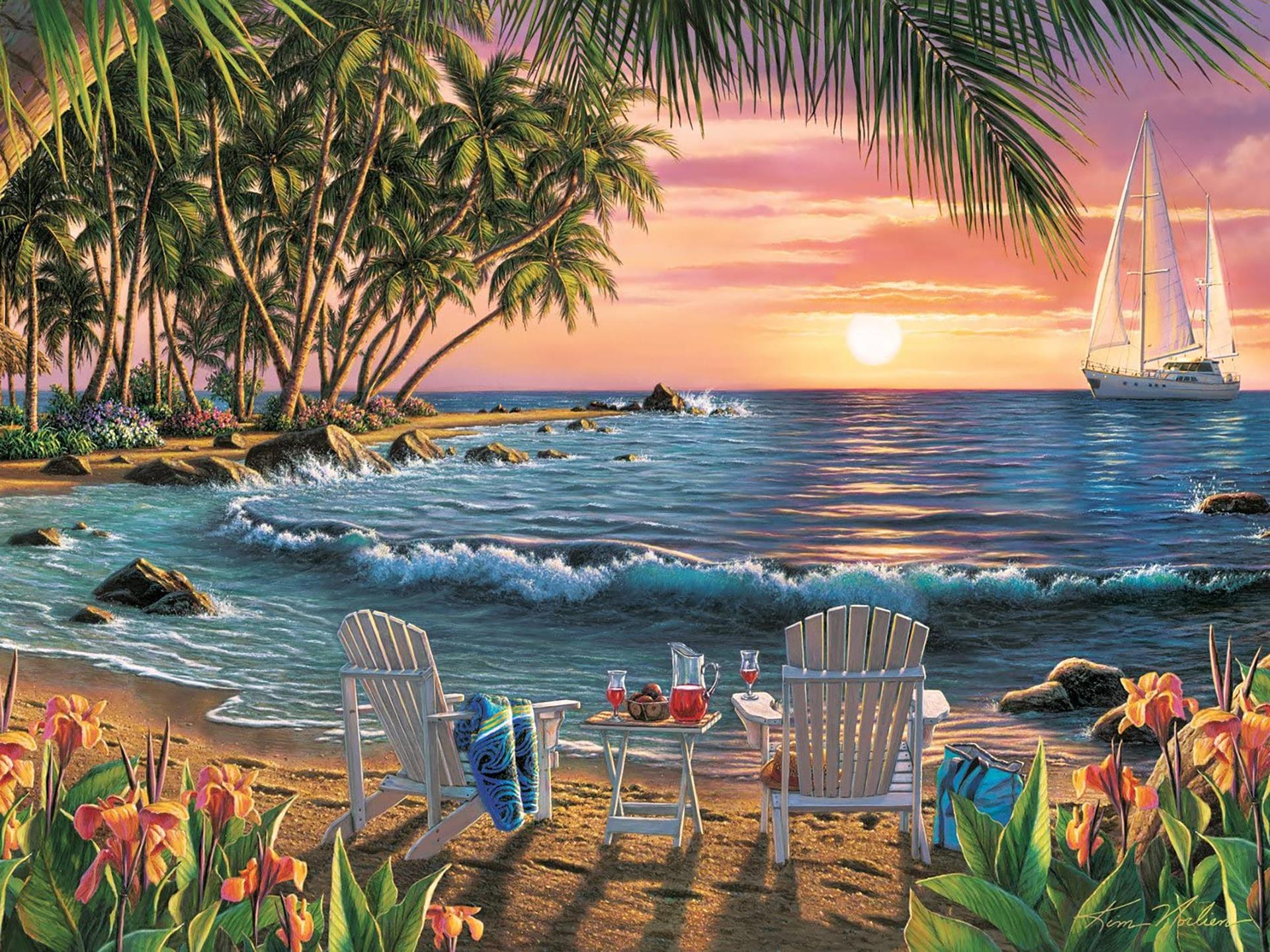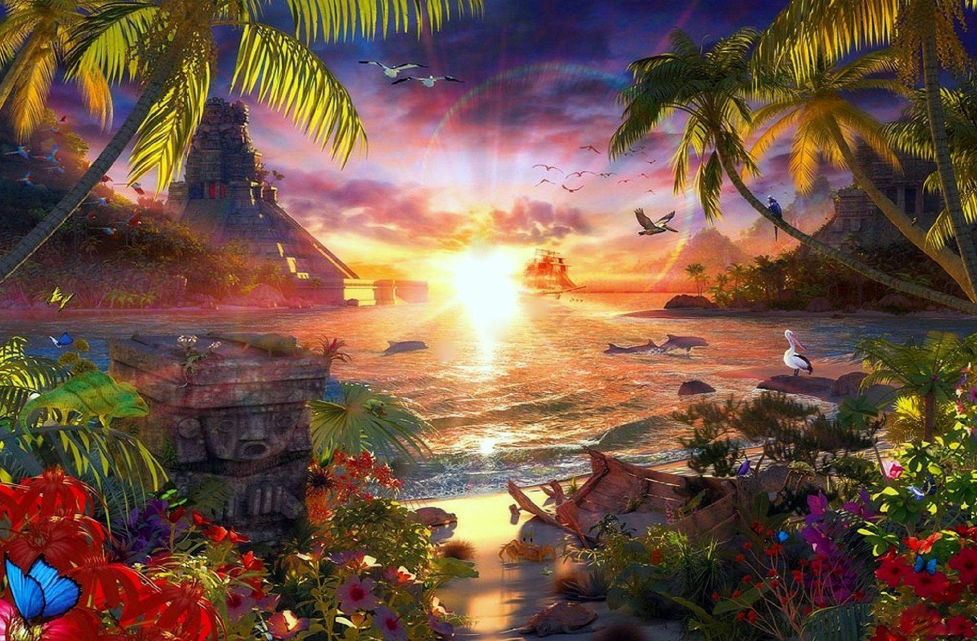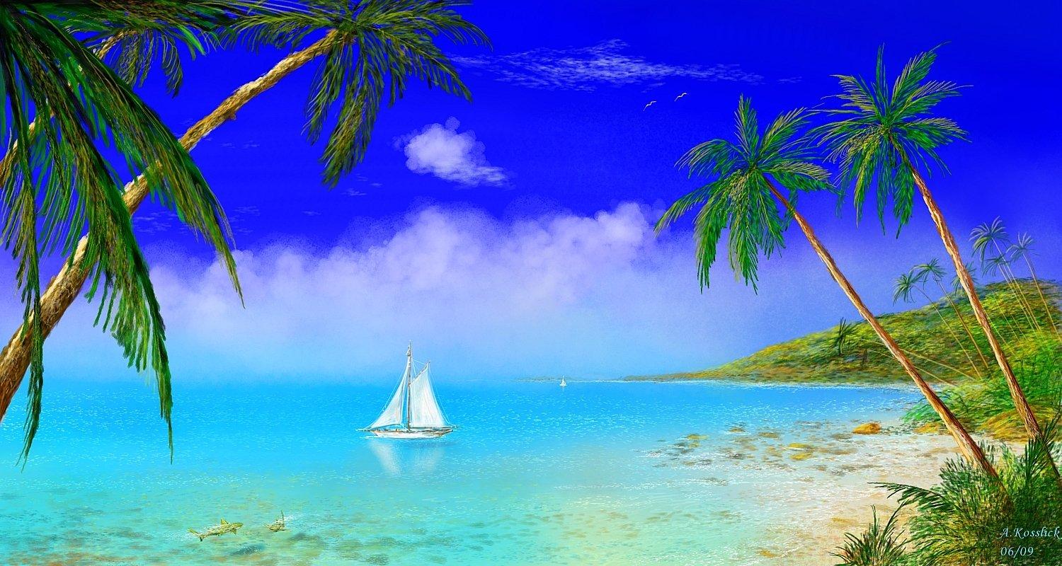 тропический остров живопись