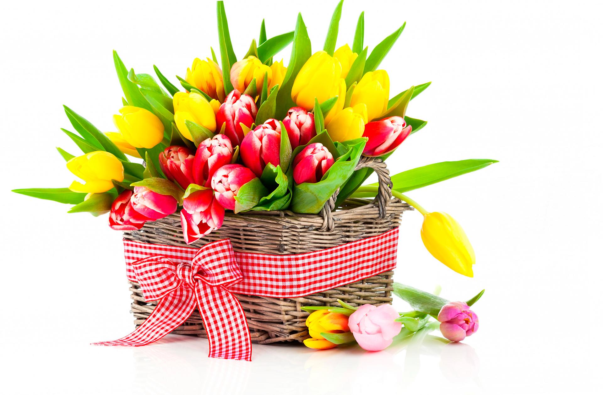 букет тюльпанов в корзине