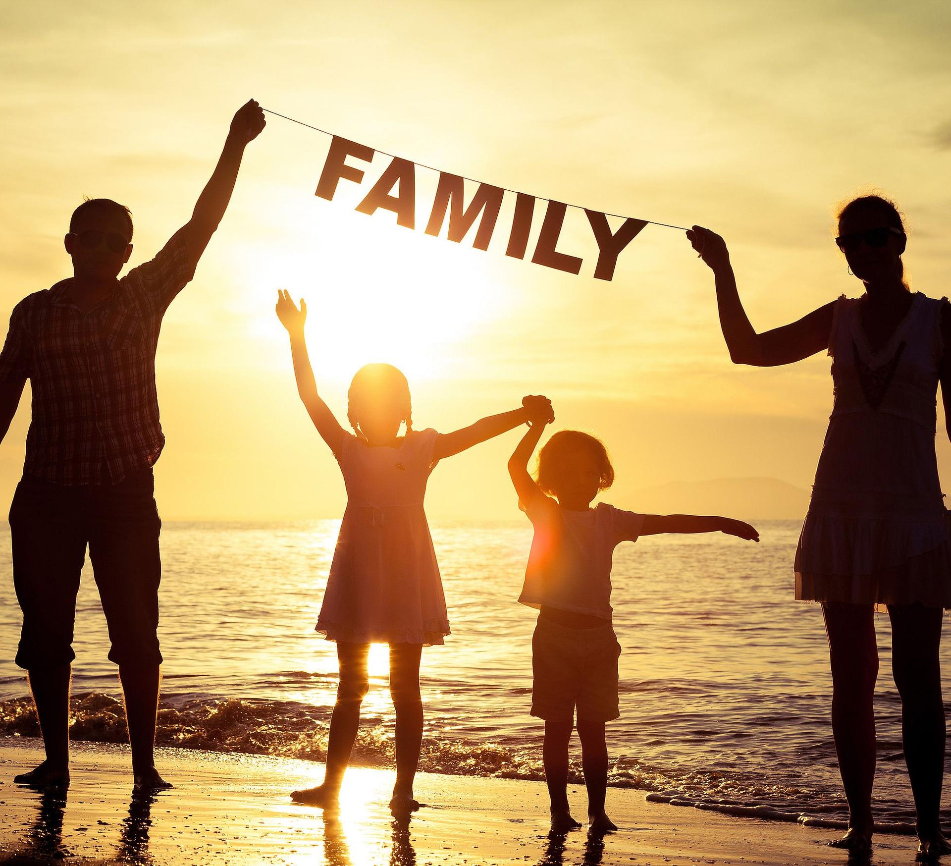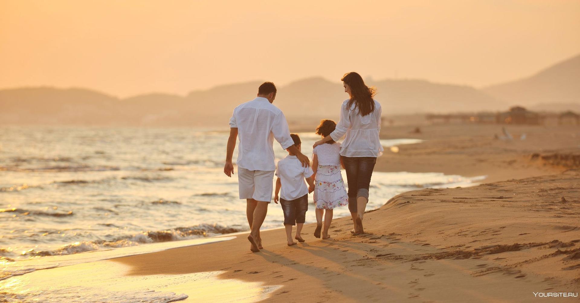 семья на берегу моря