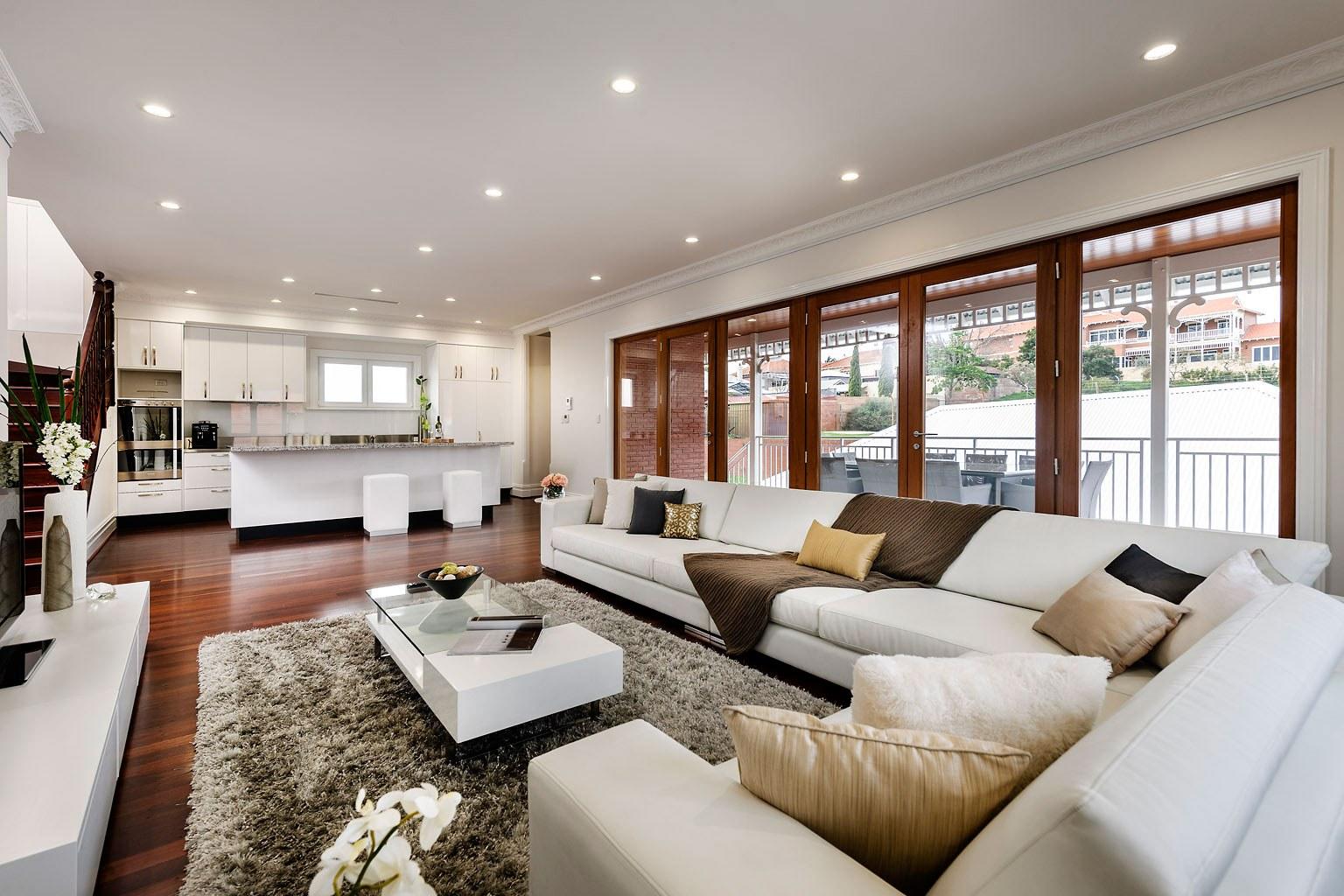 дизайн кухни гостиной с панорамными окнами