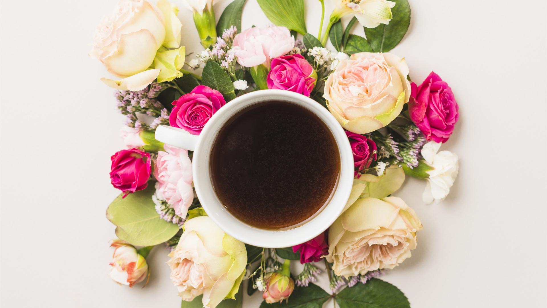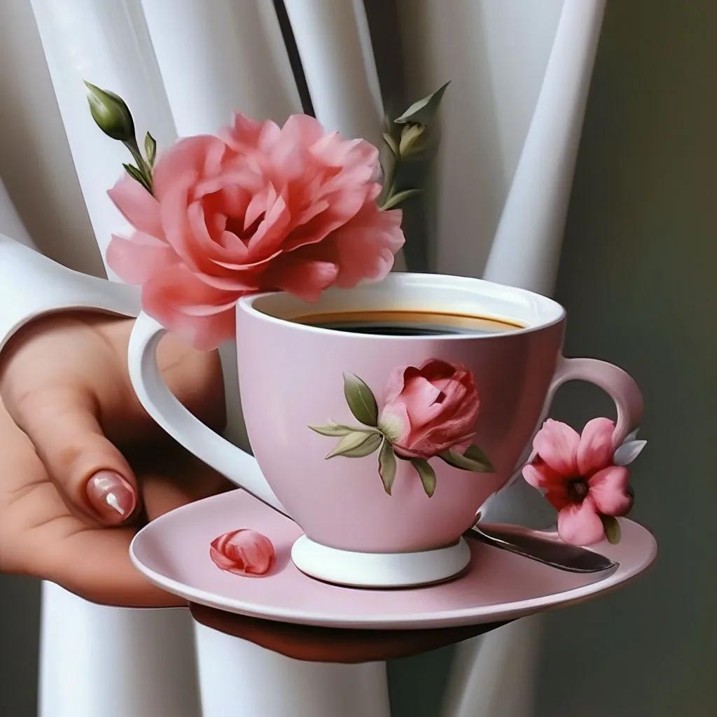 чашка кофе с цветами