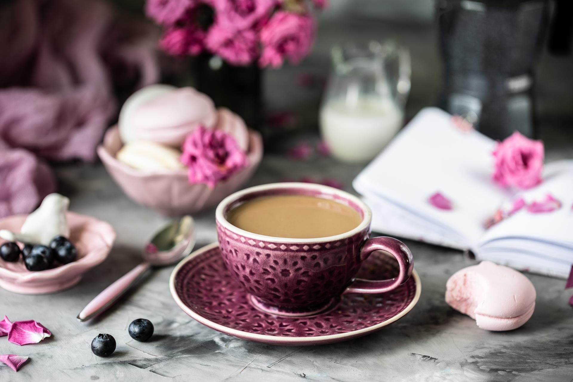кофе в фиолетовой чашке