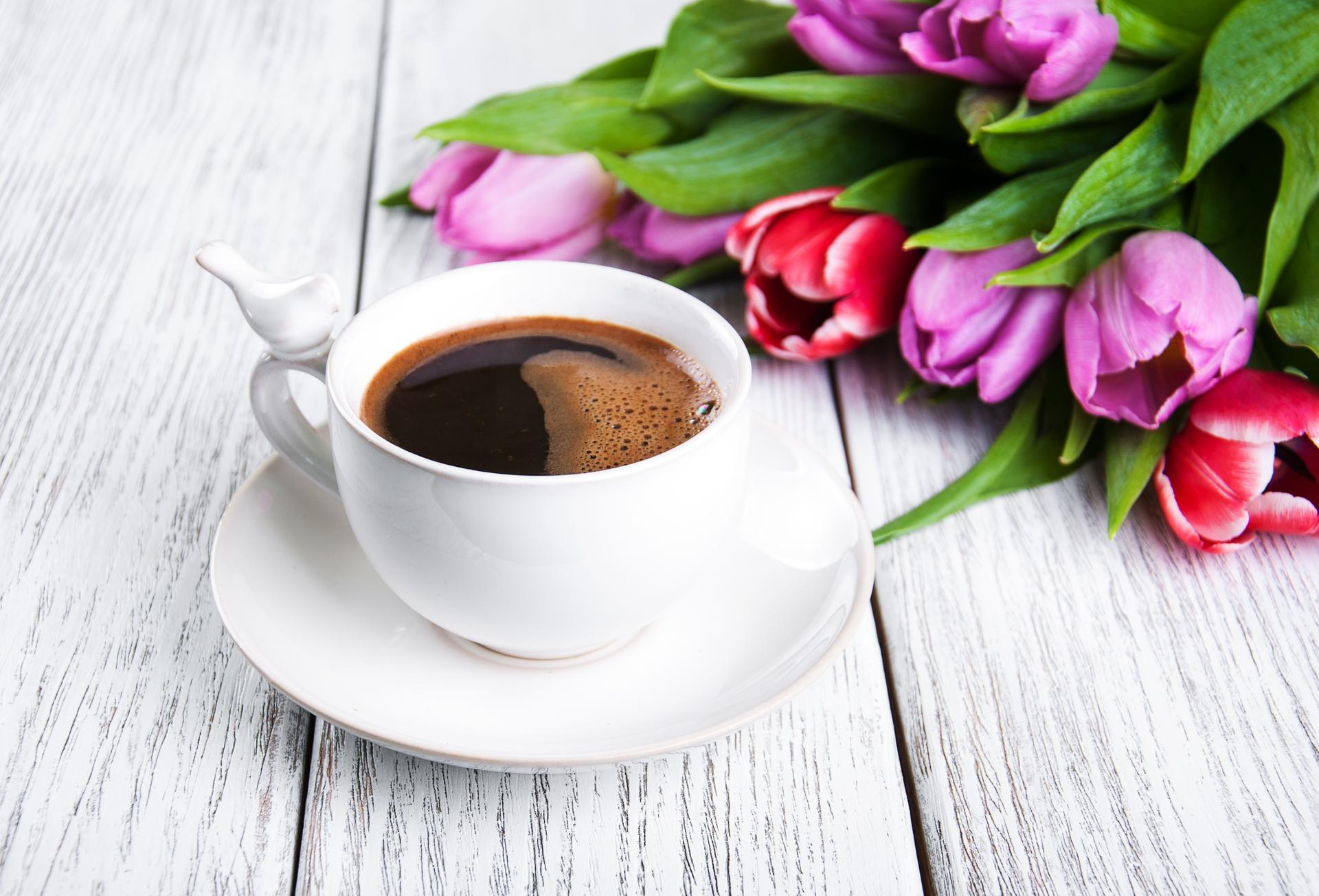 кава с тюльпанами