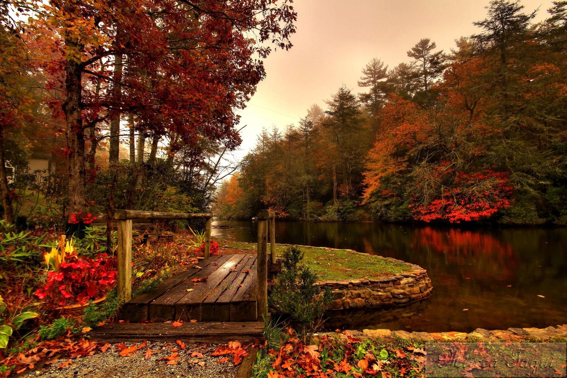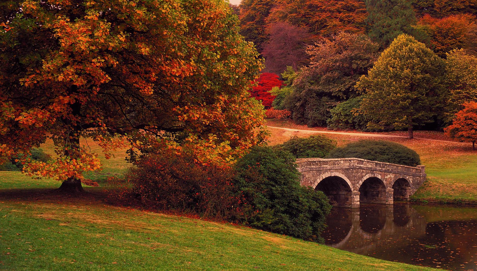 осенний пейзаж с мостиком