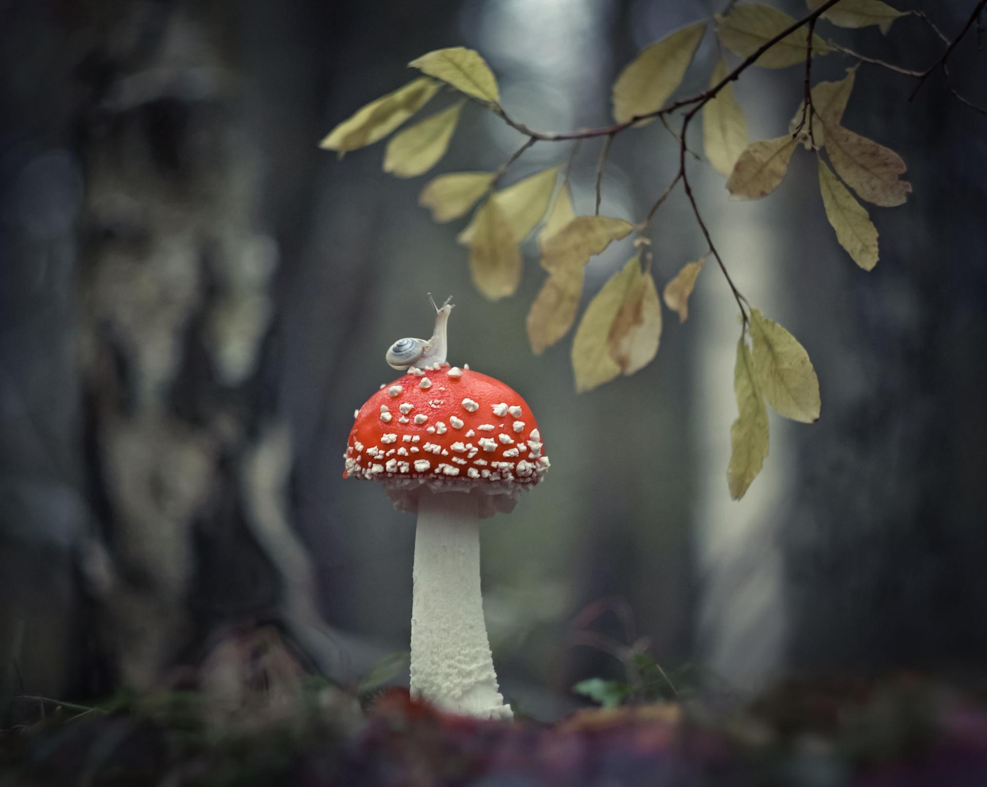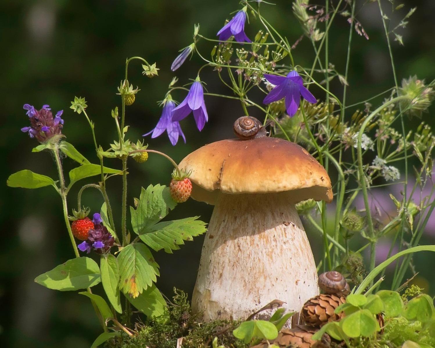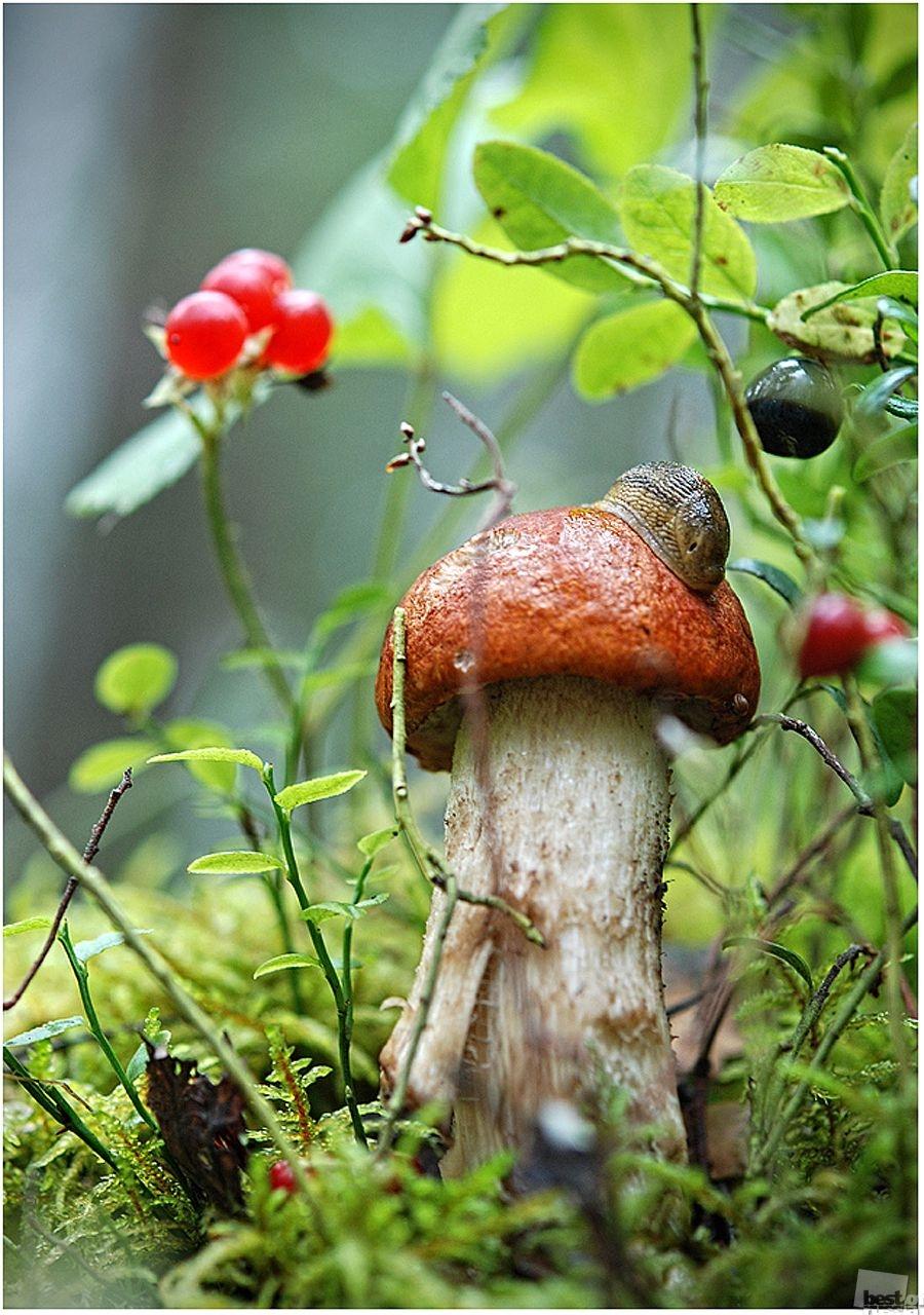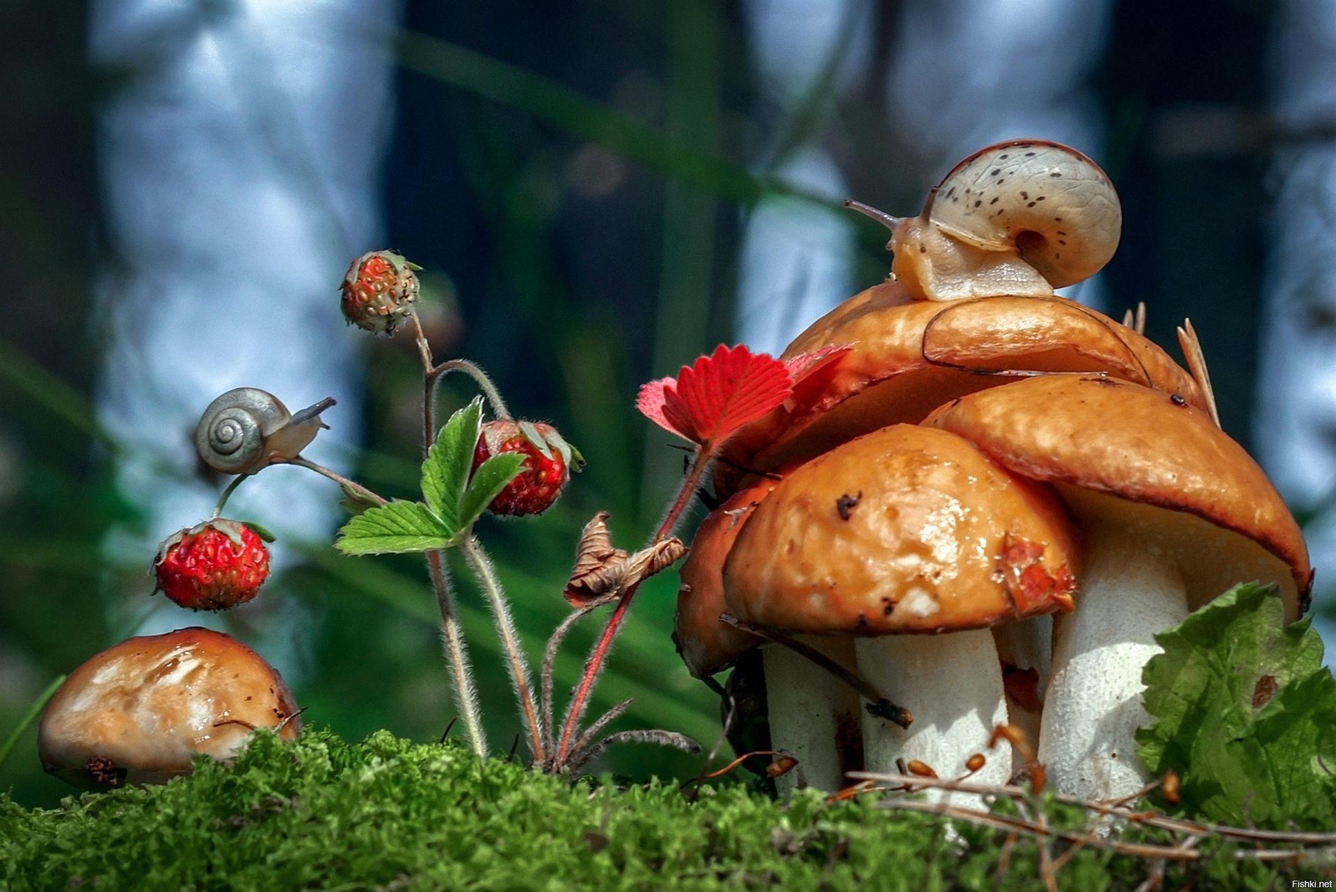 улитка на грибе