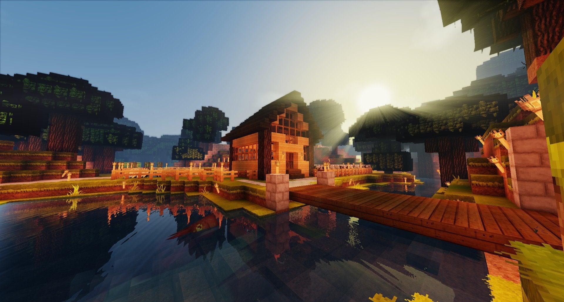 красивый фон майнкрафт с шейдерами