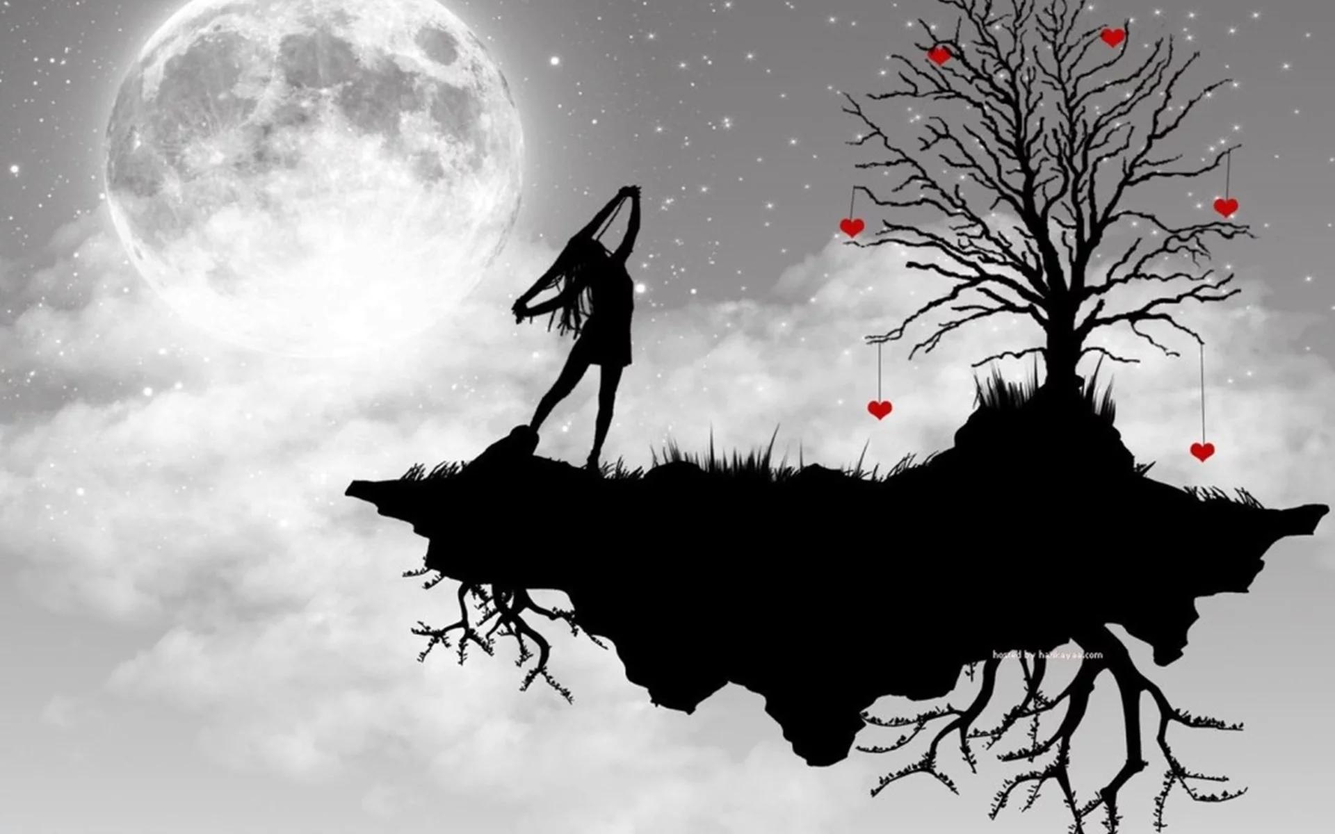 на фоне луны