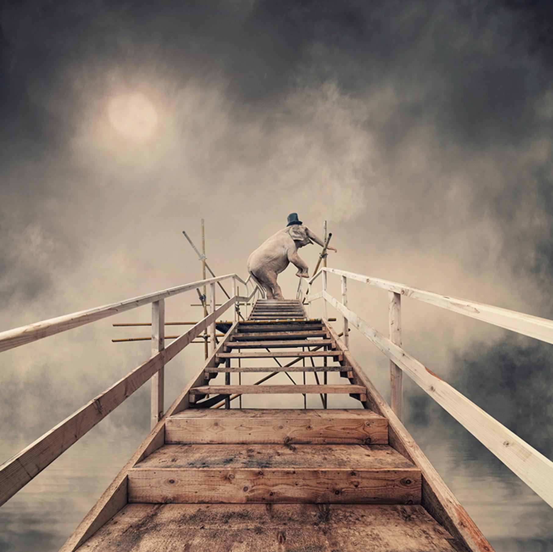 человек поднимается по лестнице