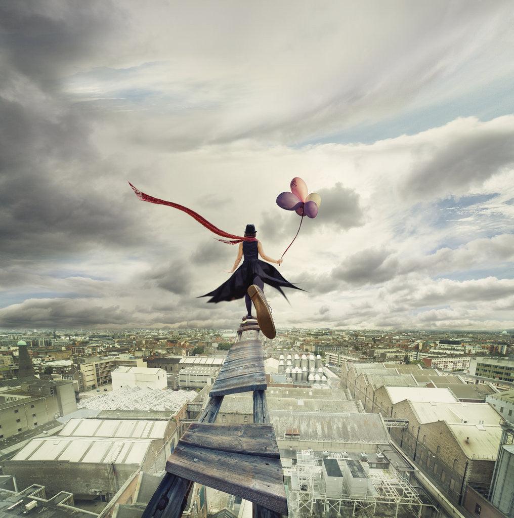 человек парящий над городом