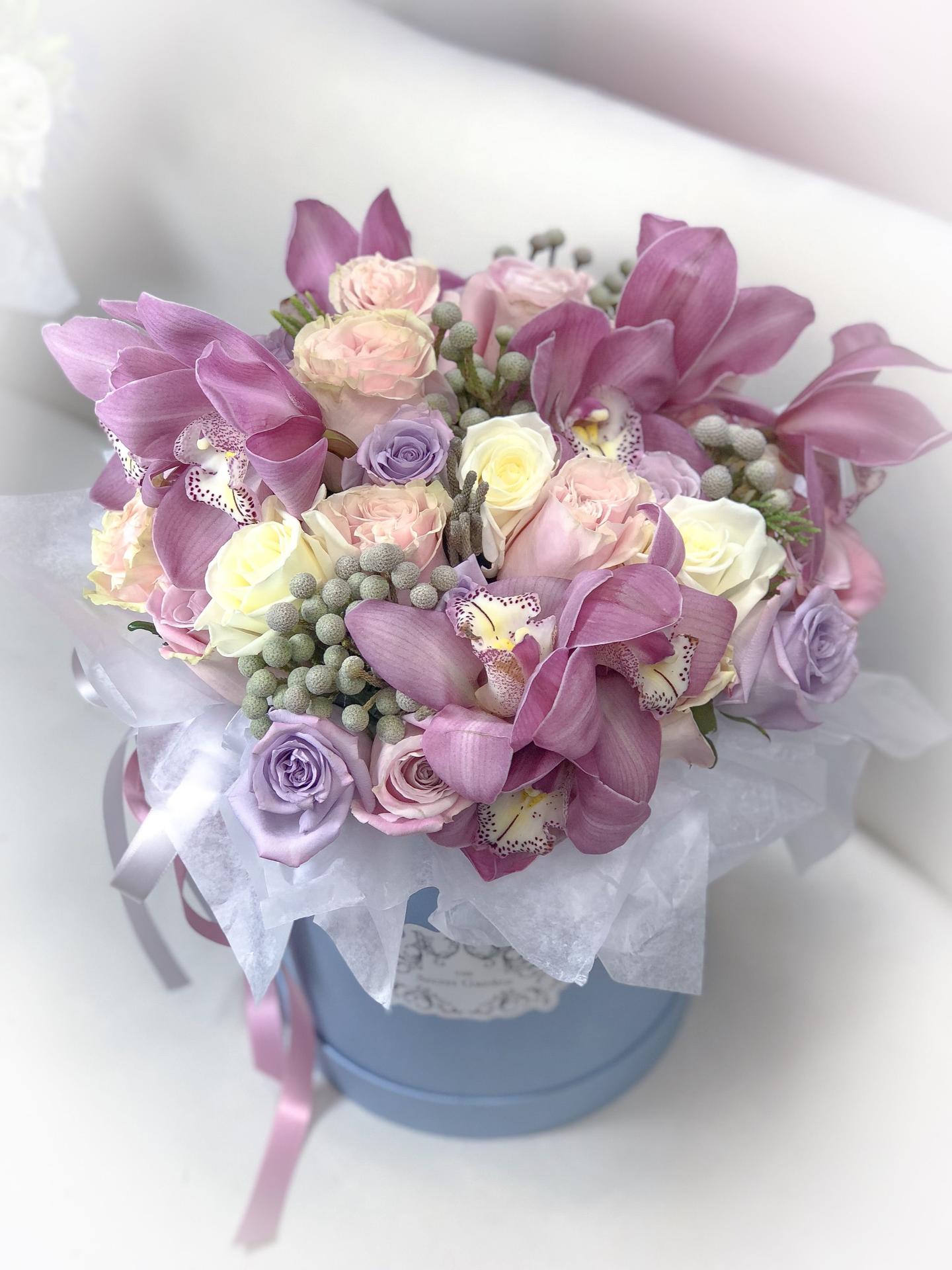 шляпная коробка с орхидеями