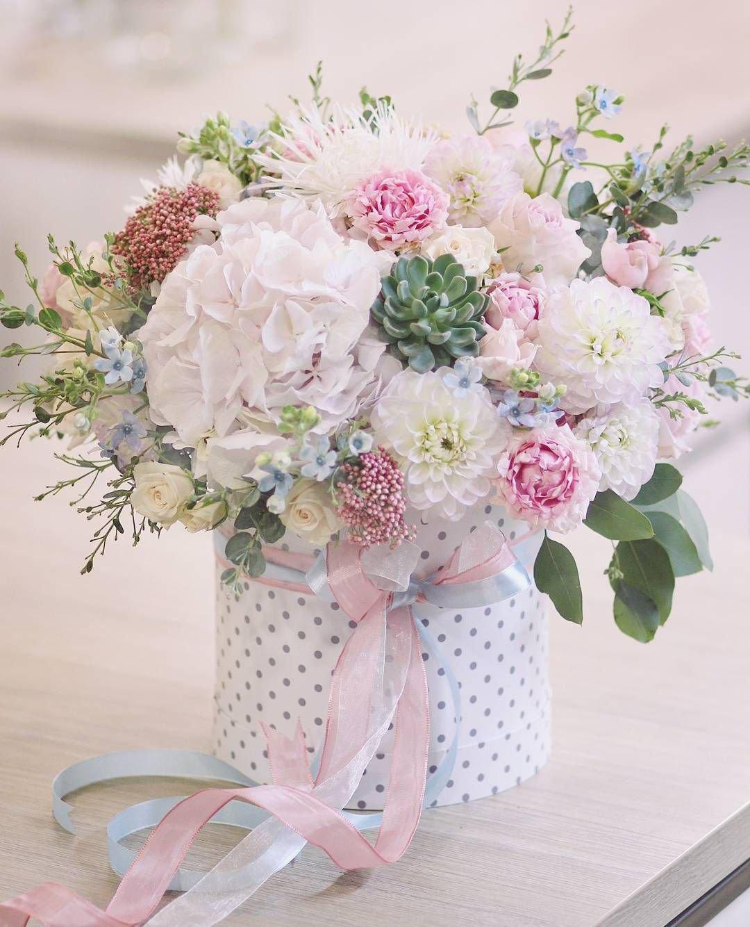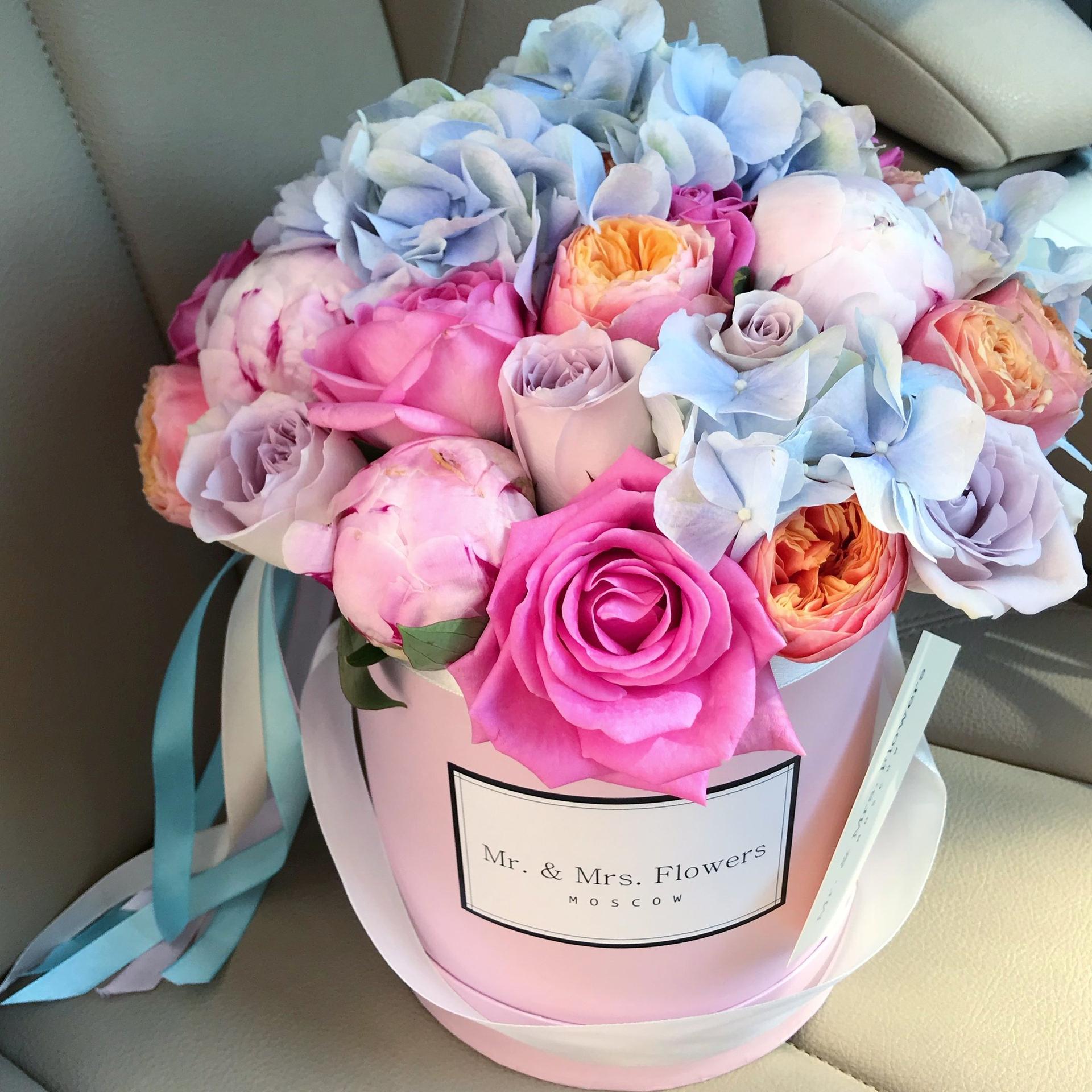 букеты в шляпных коробках