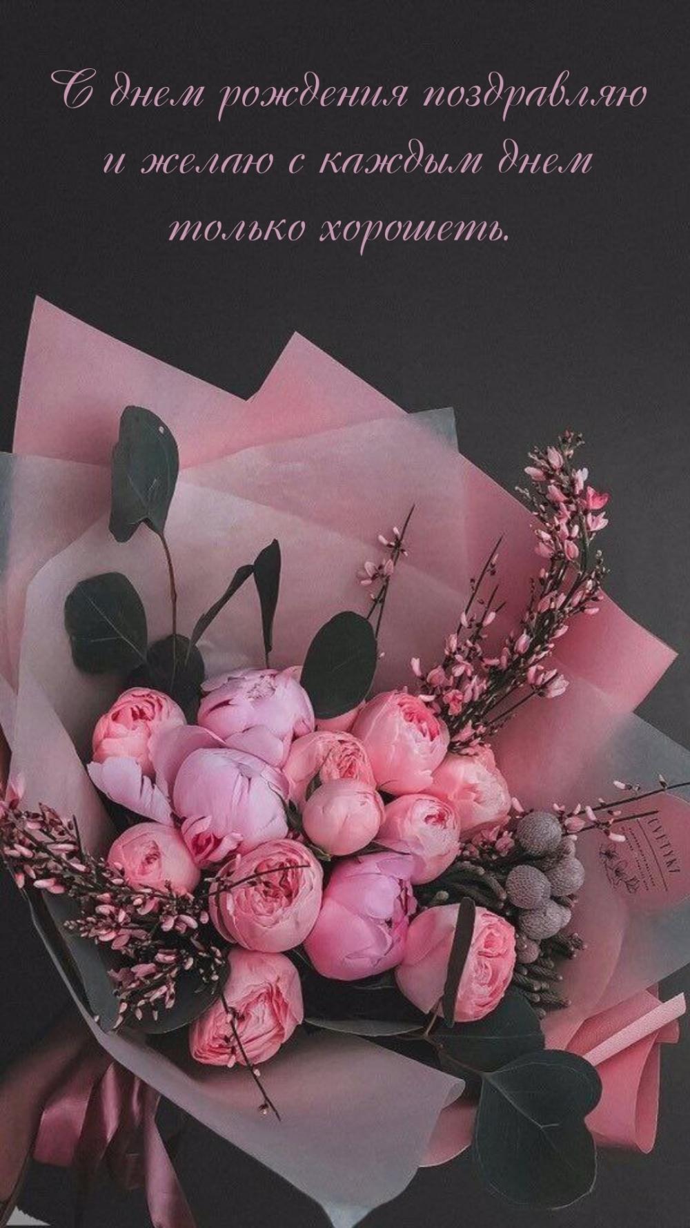 стильная открытка с днем рождения пионы