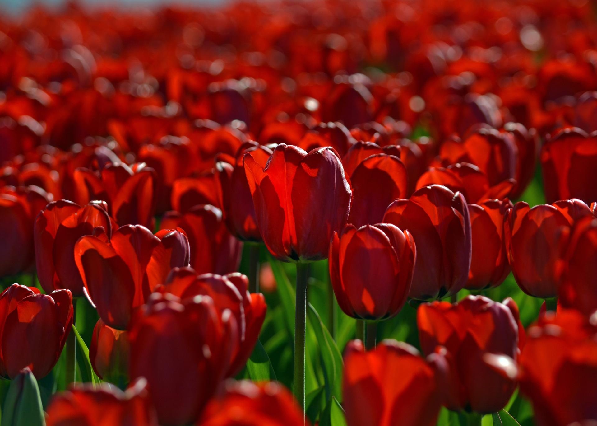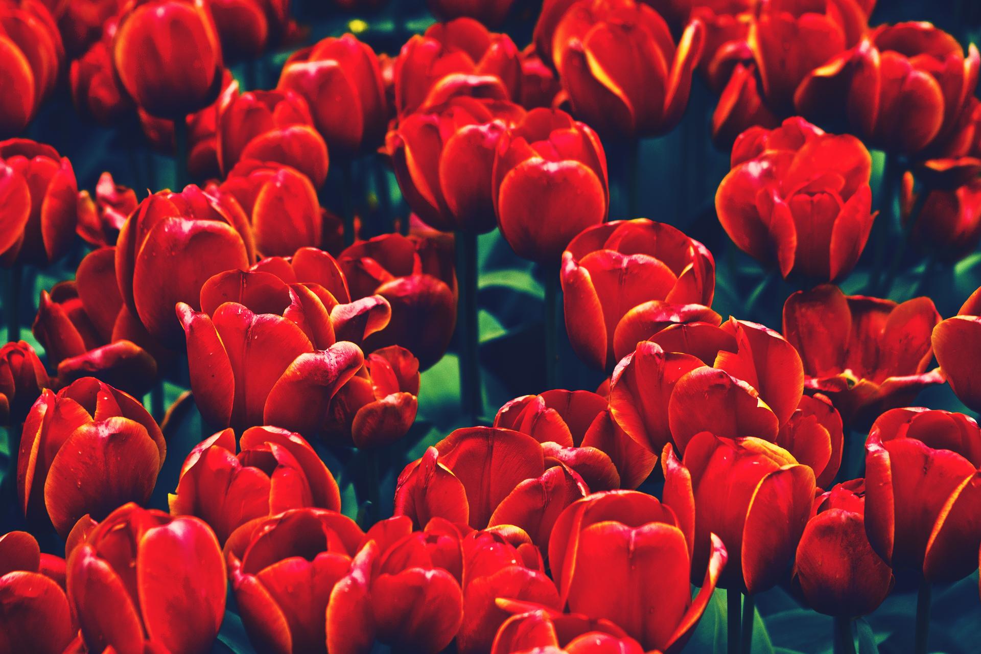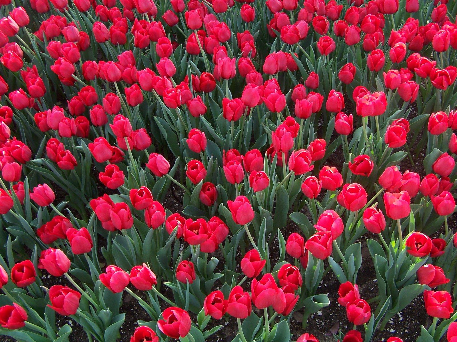 поле красных тюльпанов